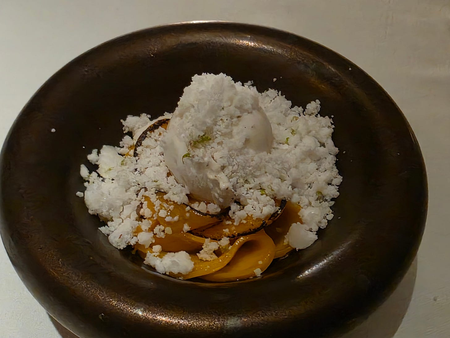 Dessert felt more Bangkok than Bordeaux: thin slices of caramelised mango with passionfruit, coconut sorbet, and a granita, finished with a grating of lime zest. Not particularly French, but no less welcome for it.