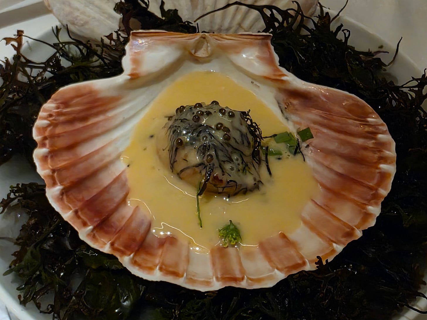 A hand-dived Orkney scallop arrived next, roasted and butter-basted, set in a beurre blanc and crowned with French caviar and fennel fronds. The dish was presented over dry ice, wisps of smoke curling around the plate, and is apparently one of the restaurant's longstanding signatures.