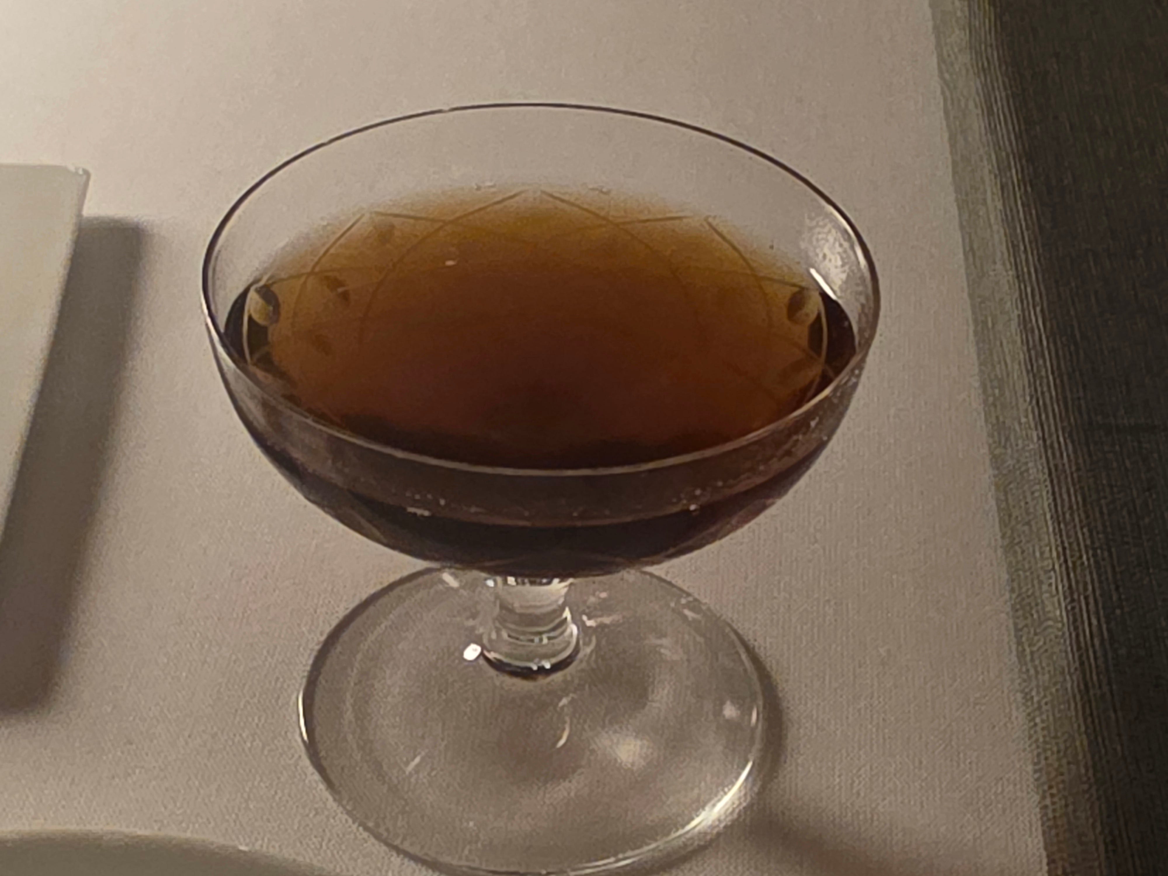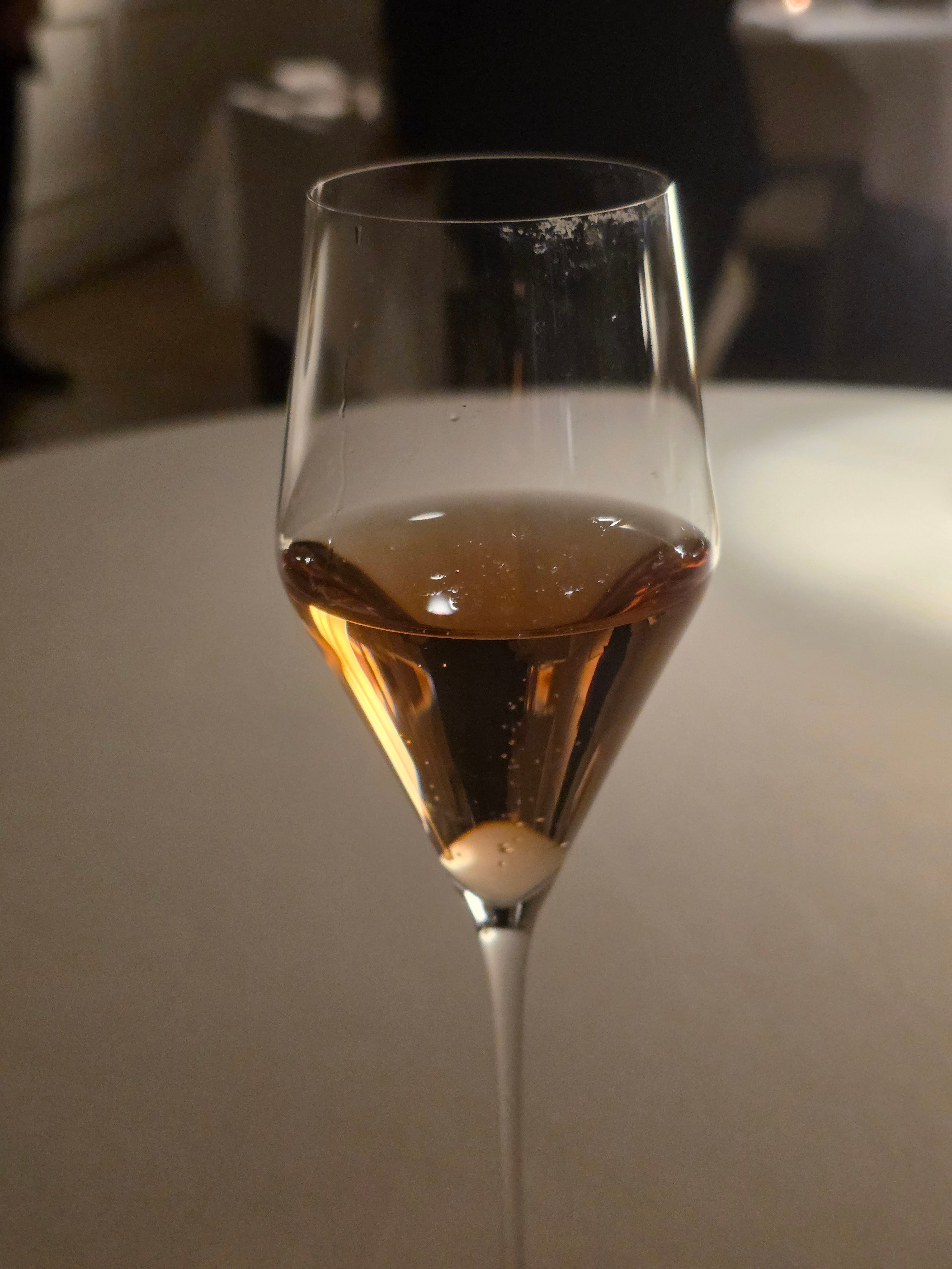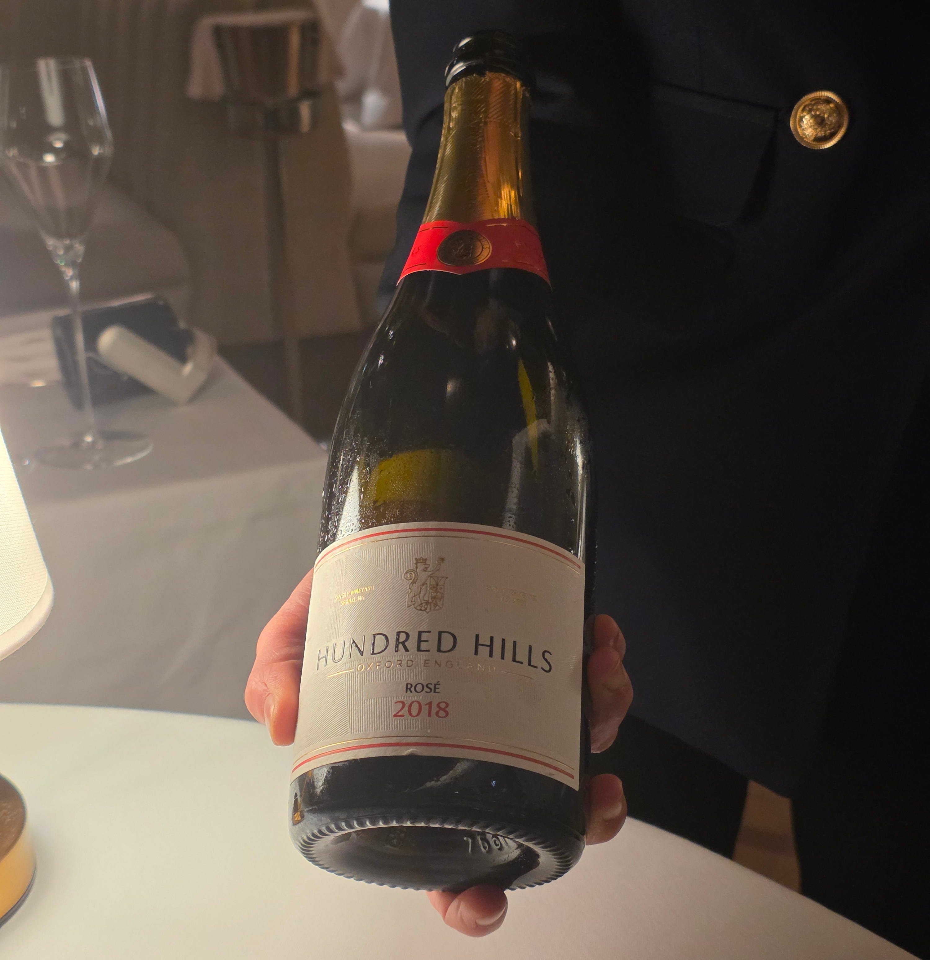 The evening opened with a glass of British sparkling rosé from an Oxfordshire winery - bright, fruit-forward, with a bracing streak of acidity. A fine way to settle in.