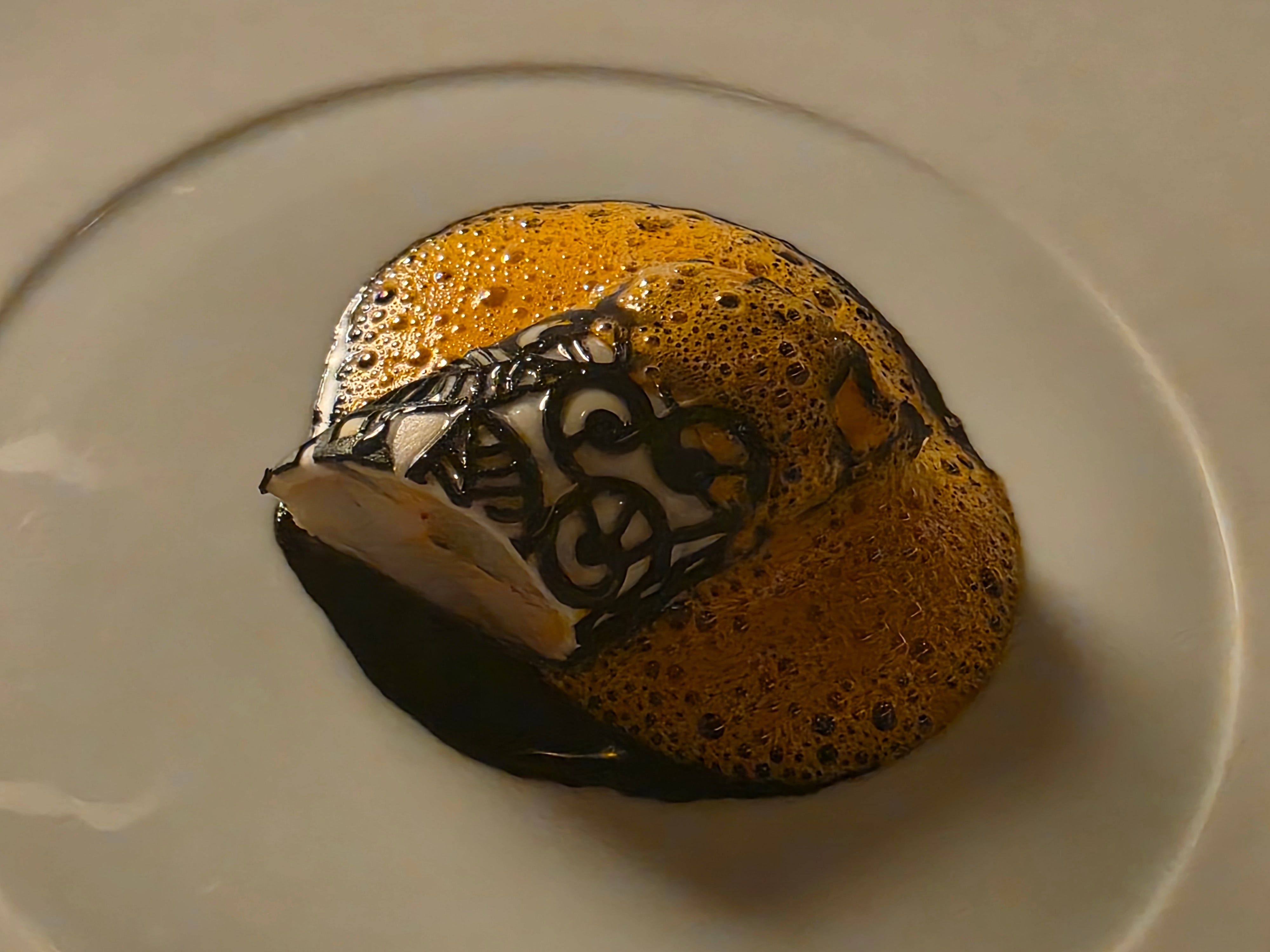 The BBQ monkfish demonstrated the kitchen's restraint and patience. Poached first in butter, then finished over binchotan charcoal for a whisper of smoke and caramelisation, it arrived with a red wine and monkfish bone sauce, a thick sabayon, and a scattering of Madagascar pepper. Meaty and substantial.