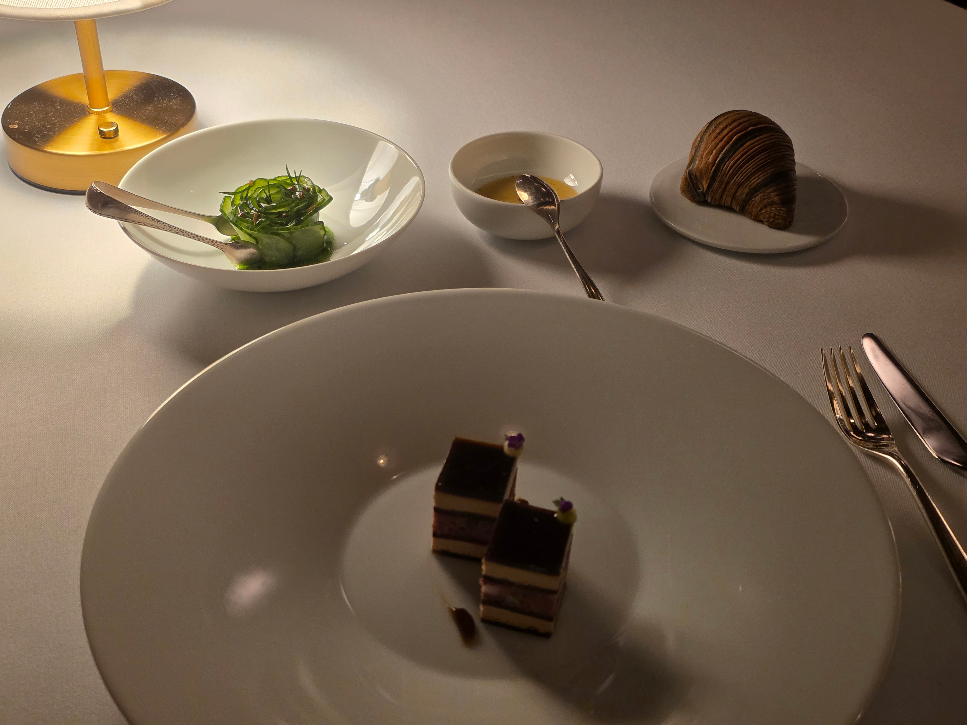 The bread course offered a selection of sourdough, rye, and the house signature: a chorizo roll so good I could barely stop myself from going for more. Soft, flaky, intensely savoury - I had two and had to physically stop myself from reaching for a third. The usual rule about not filling up on bread before dessert was sorely tested.