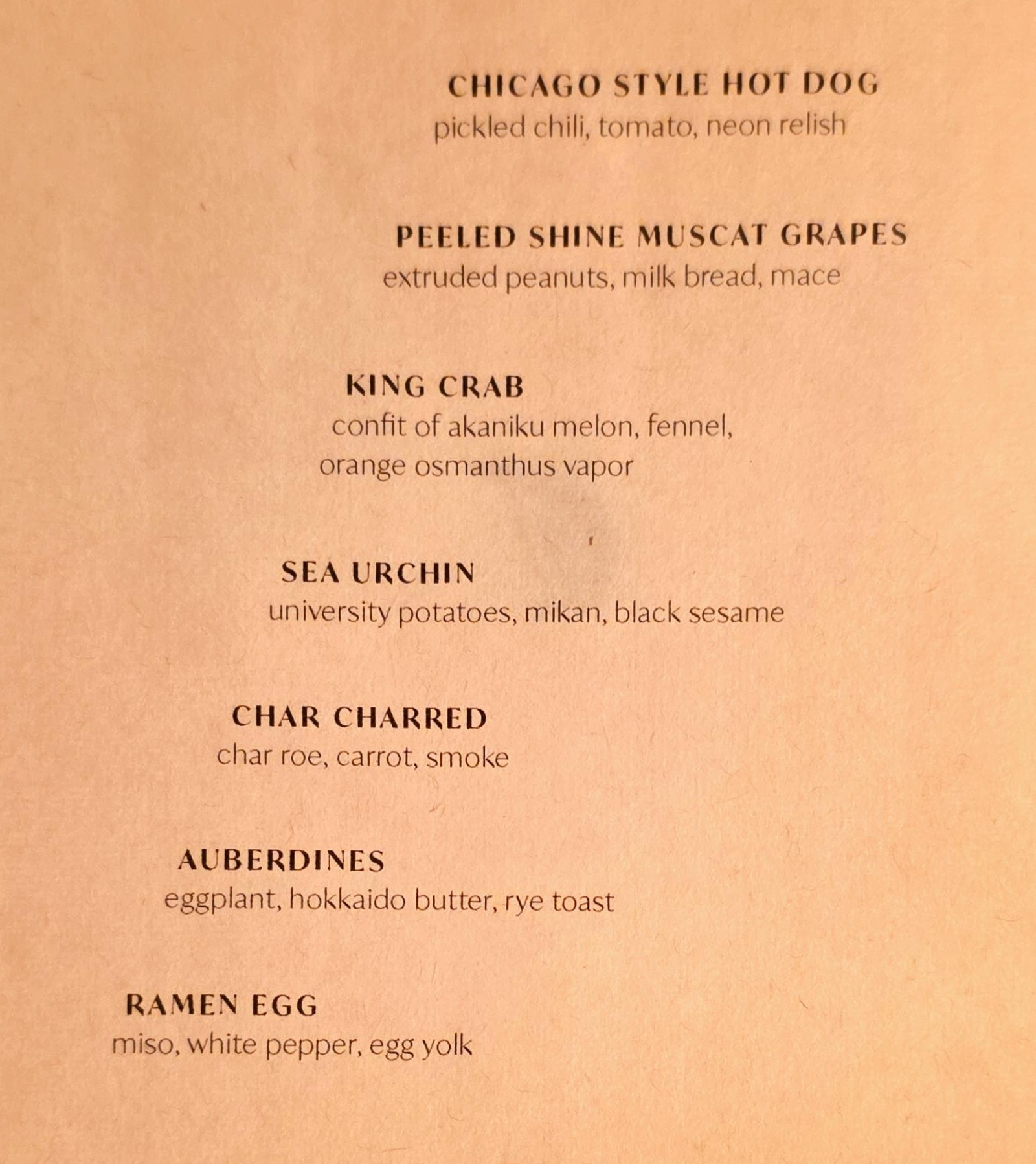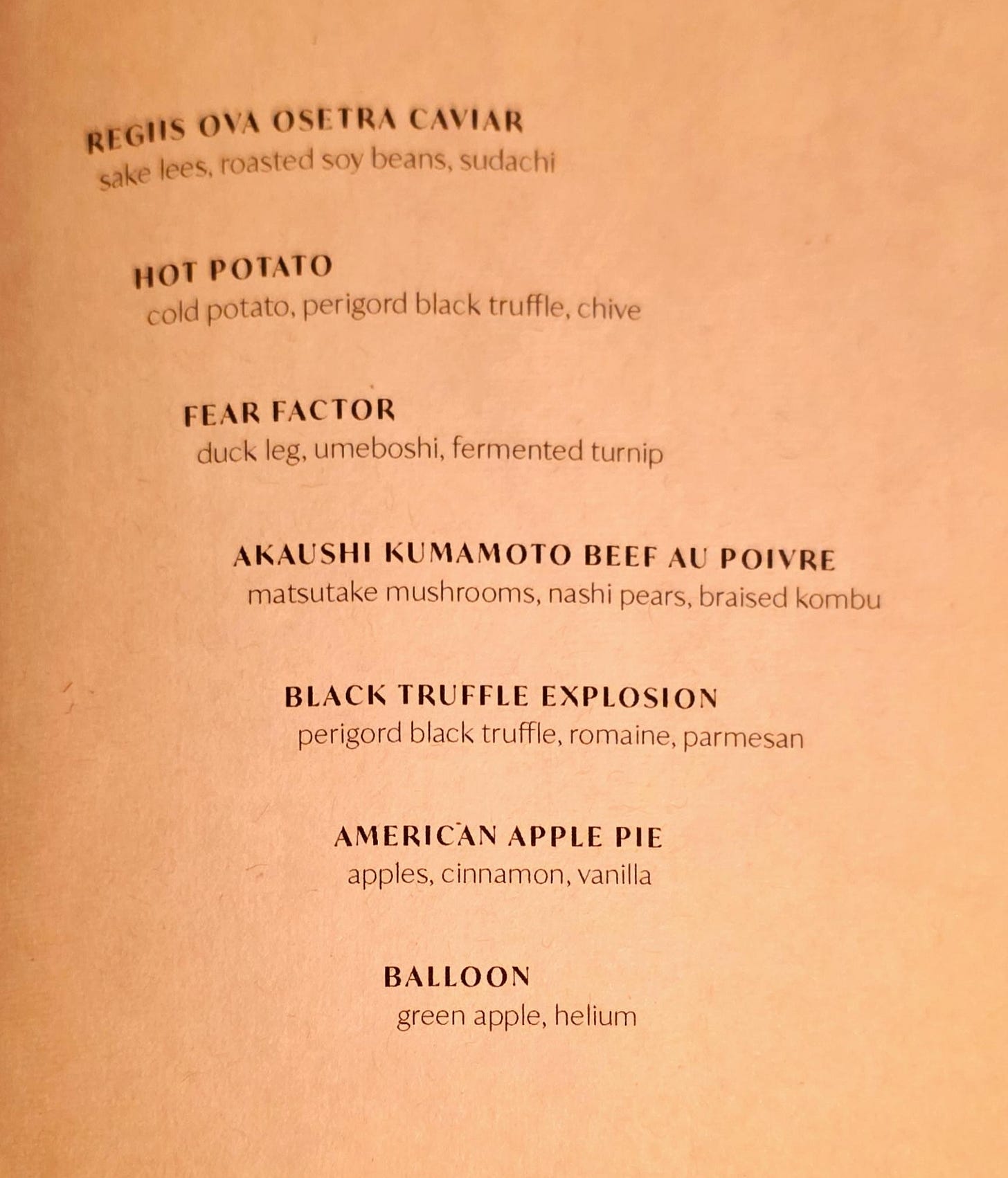 The menu wasn’t revealed until the end of the meal, but included many Alinea classics, as well as unique adaptations trying to incorporate Japanese influences.