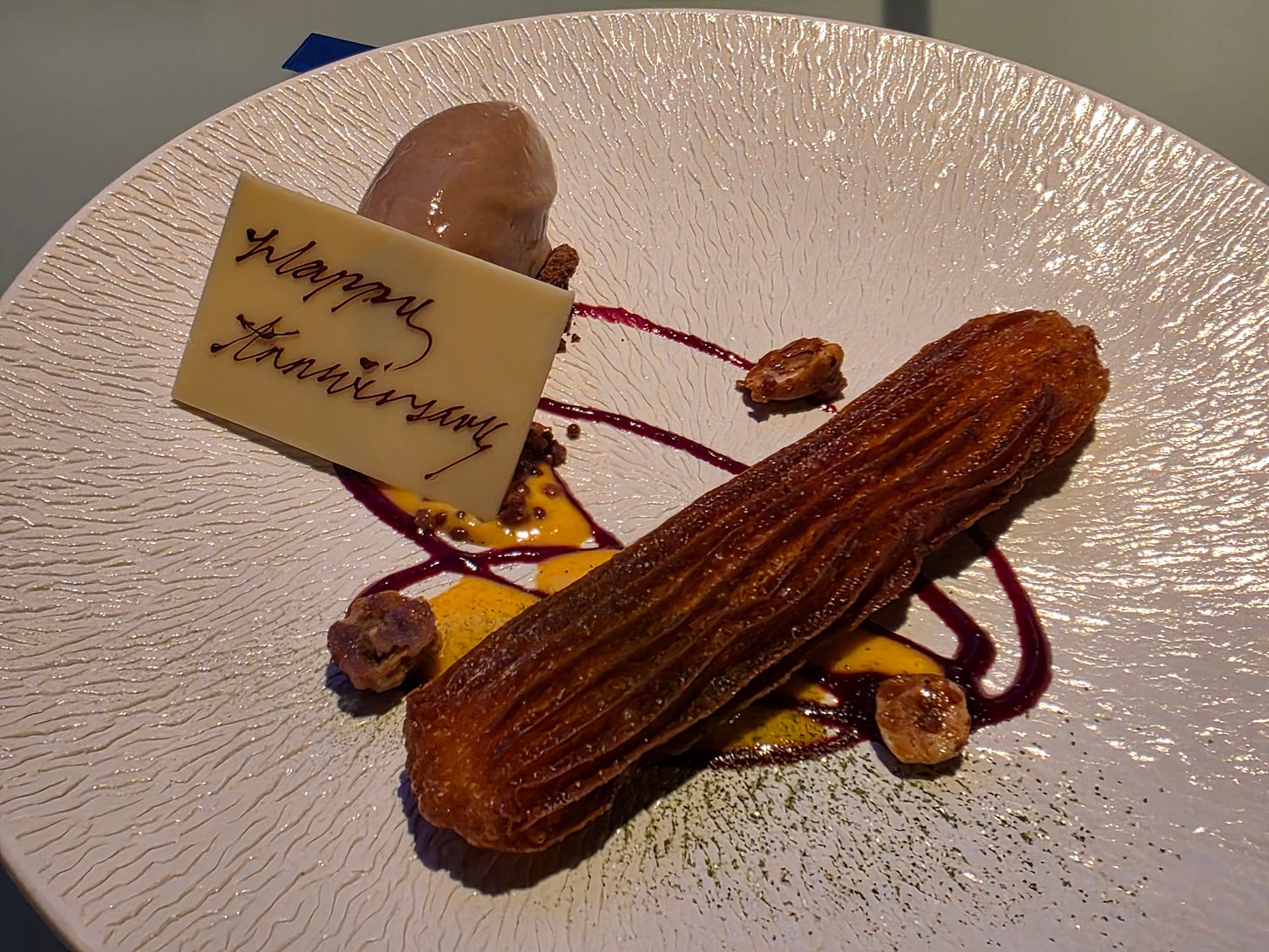 The dessert of a cinnamon churro served with chestnut ice cream and hazelnuts. Failed to see the Hong Kong connection here, but churros are always good.