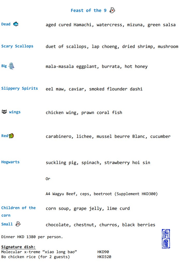 We went with the Feast of the 9 Ghosts tasting menu, adding on both supplements. The menu was surprisingly affordable for a fine-dining restaurant in Hong Kong, and I remember when Bo Innovation used to be one of the priciest menus in town. We decided to do the four wine pairing as well.