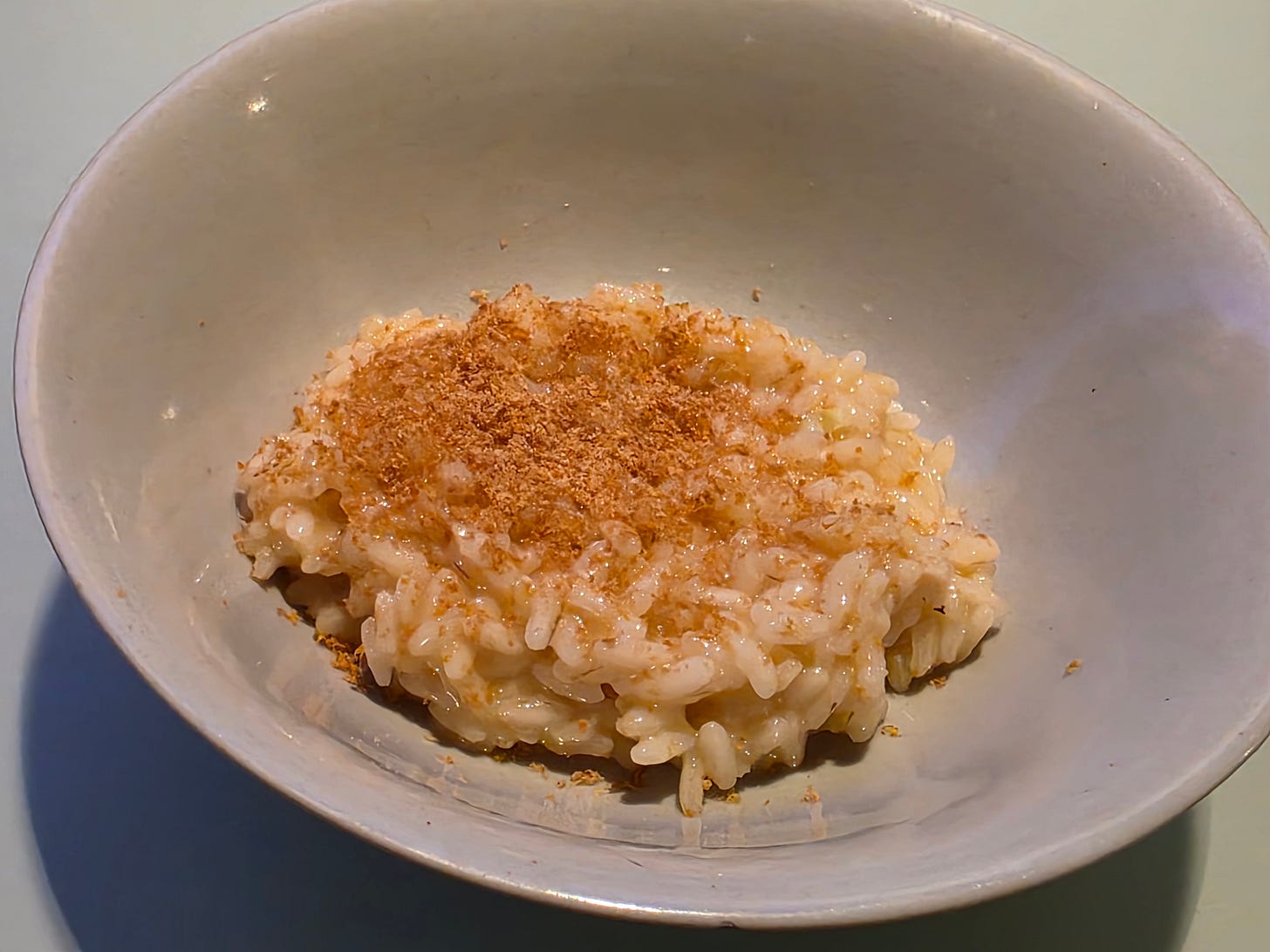 The other supplement, the Bo chicken rice came next. A rich chicken oil risotto, topped with shaved dehydrated foie gras. Just a little underdone, so the rice still had a bit of crisp. Neat, but far from the amazing chicken rice I remember from Odette. Skews a bit more Singporean than Cantonese though.