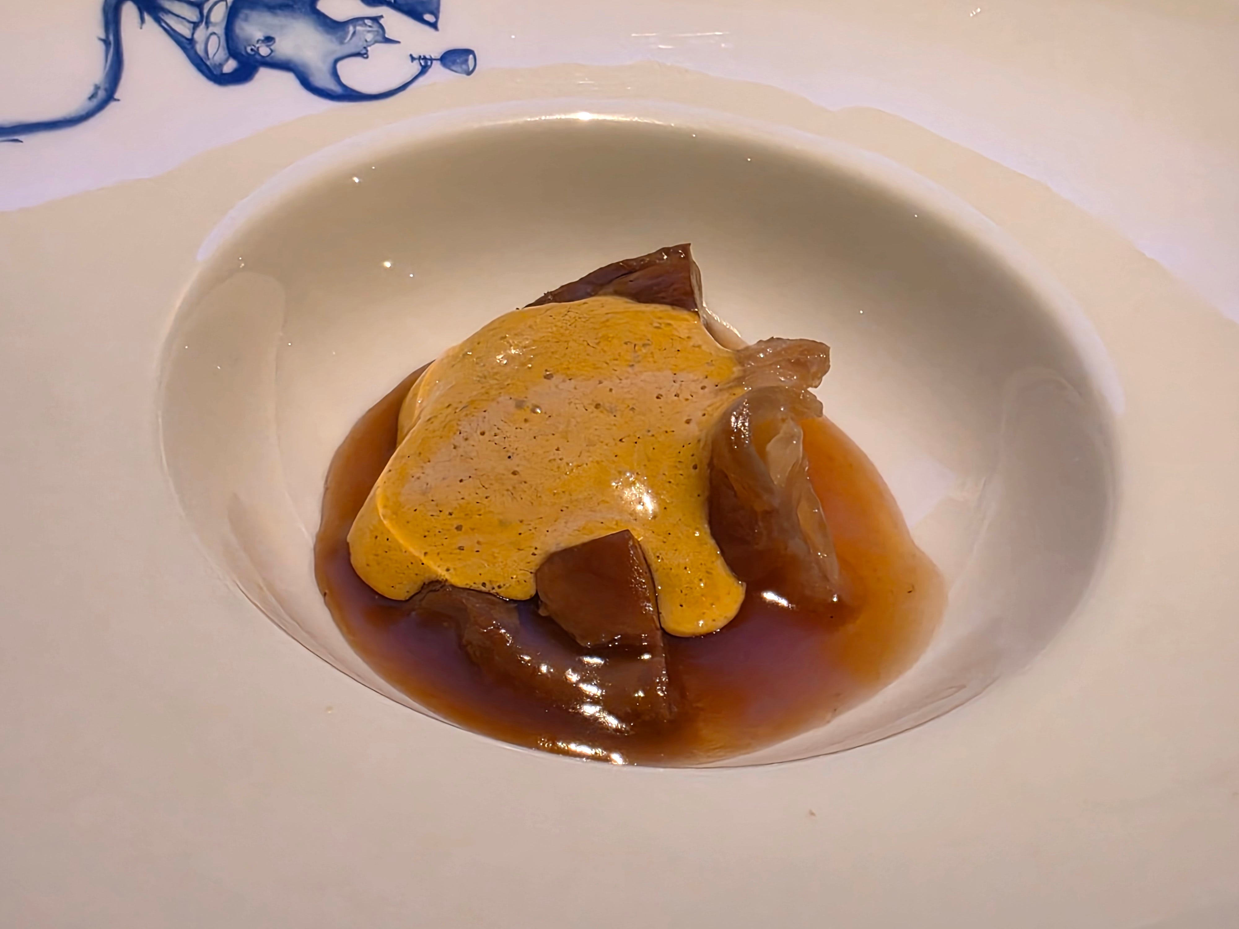 Some heartier dishes came next, and we started to go off menu. Instead of the carabinero (which was replaced with a lobster anyways), there was the option to go with sous vide fish maw and rehydrated dried abalone with a tangy sabayon sauce. Dense, rich, slightly chewy. Dried seafood dishes are a classic part of Cantonese fine dining, and the preparation of this dish was superb.
