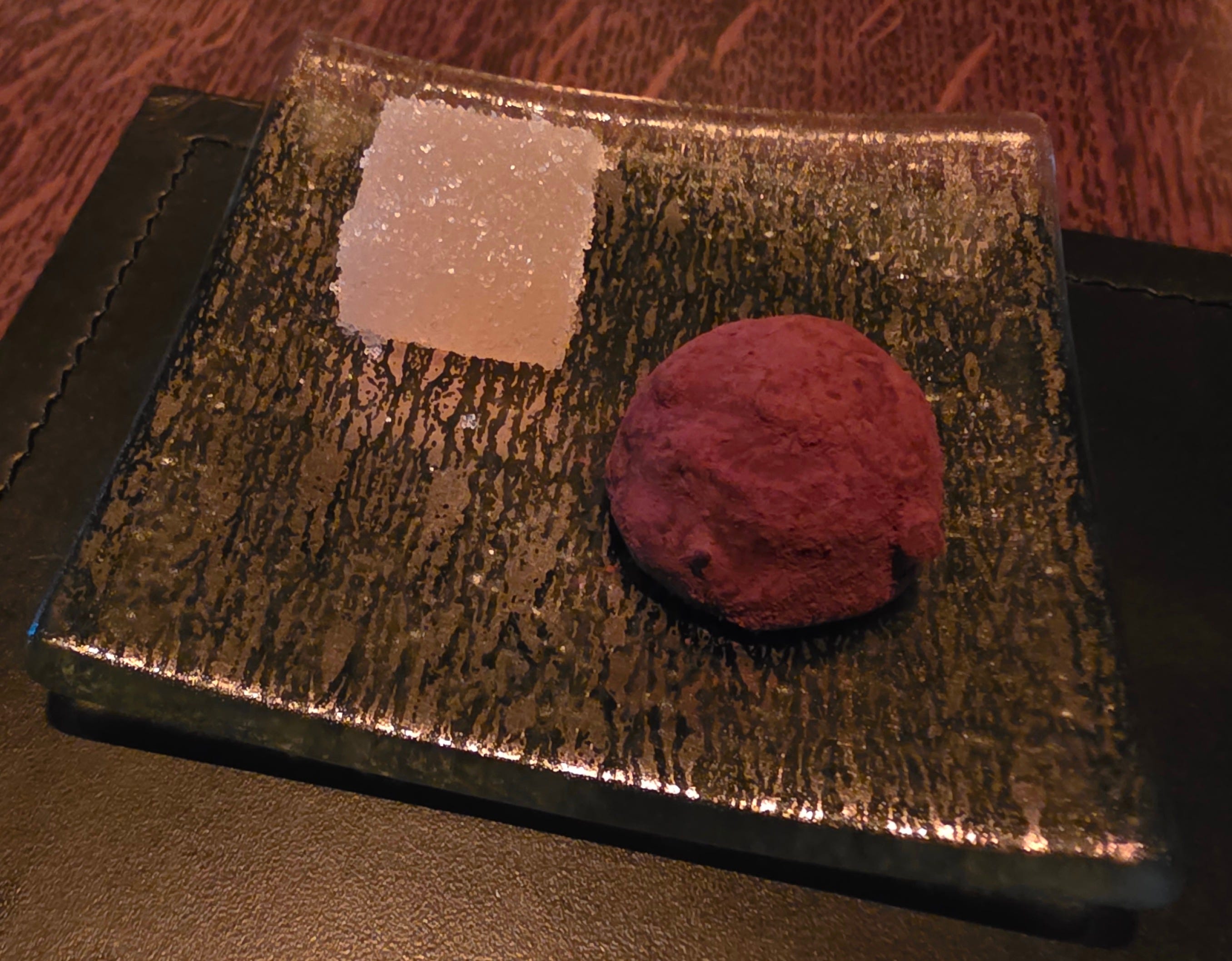 Finally, the petit four - a chocolate truffle and a some sort of jelly. By this time I was stuffed, so unfortunately, I left them untouched on the table.