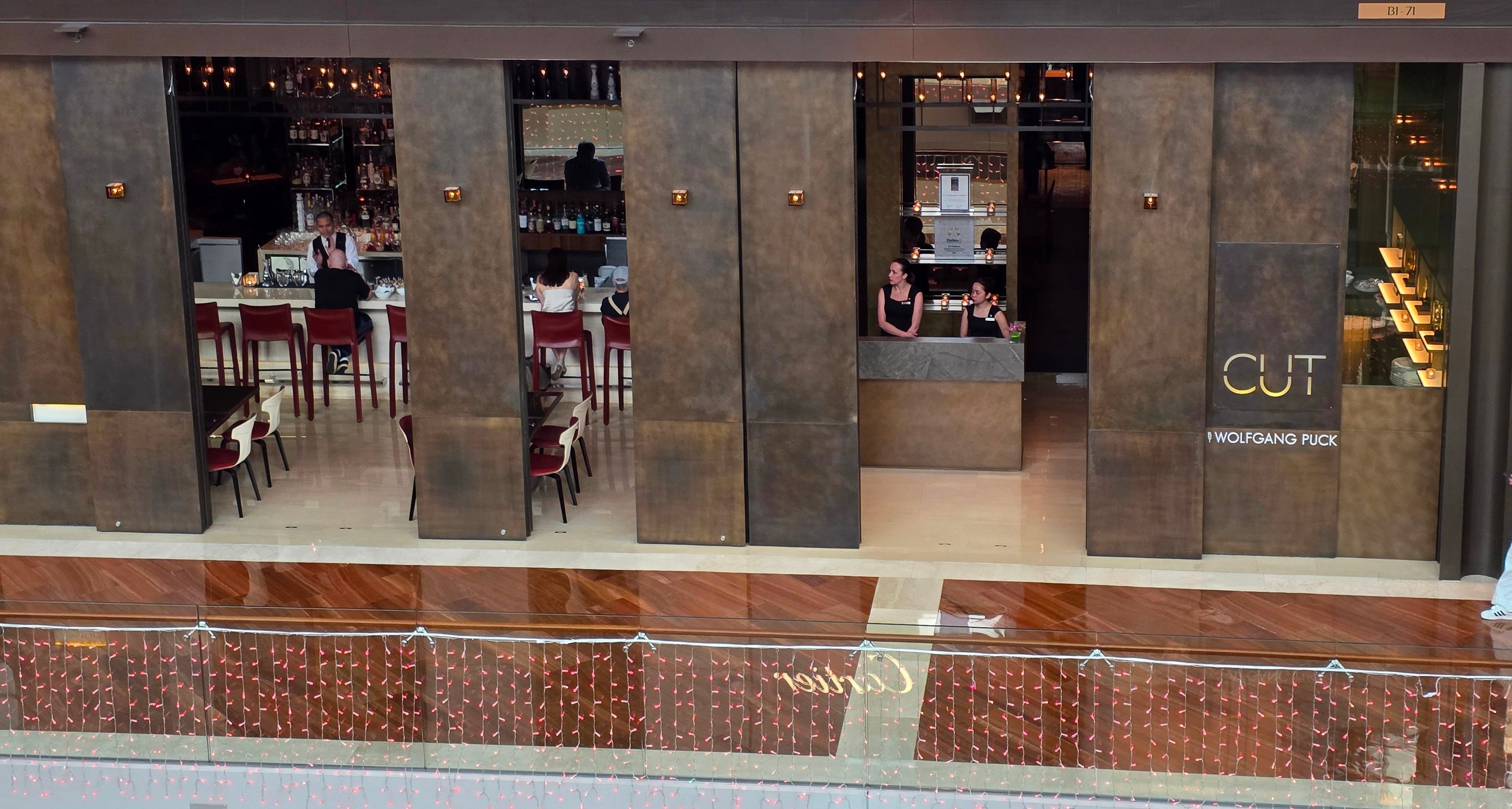 Located in the Marina Bay Sands mall, CUT sits nearby the food court beside a variety of luxury fashion stores.