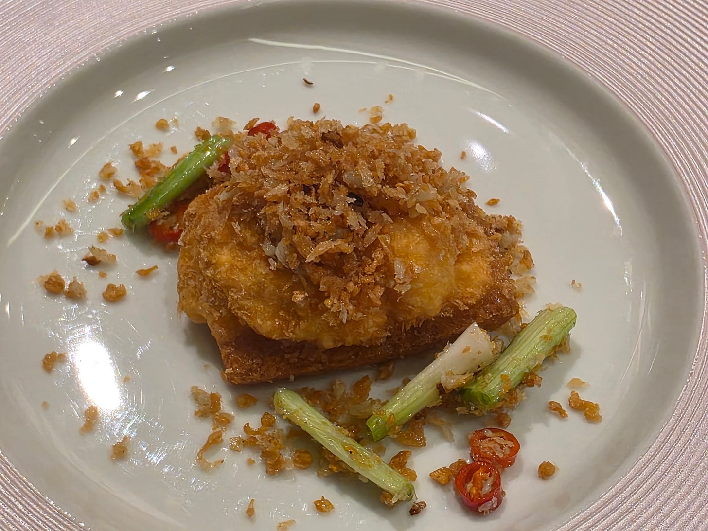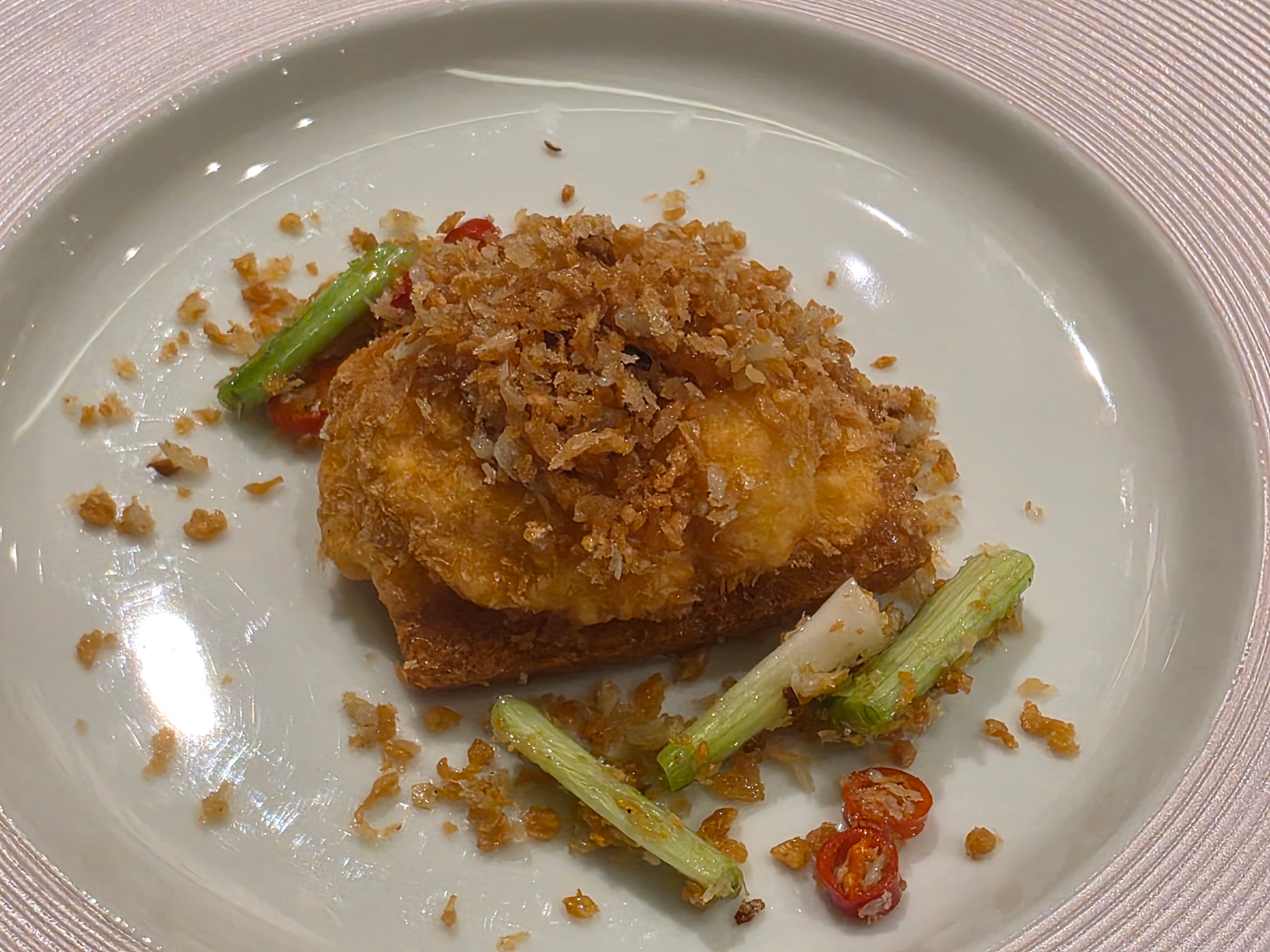The first example of this was a deep-fried lobster toast with garlic and chili. In its more ordinary form, this would usually be made with shrimp paste, the kind of thing you might happily eat from a cha chaan teng or snack stall without giving it much thought. Here, the restaurant substituted lobster tail, then topped it with deep-fried garlic, bird’s eye chili, and green onion for a bit of heat and a whisper of wok hei. It was excellent. Rich, crisp, and aromatic.