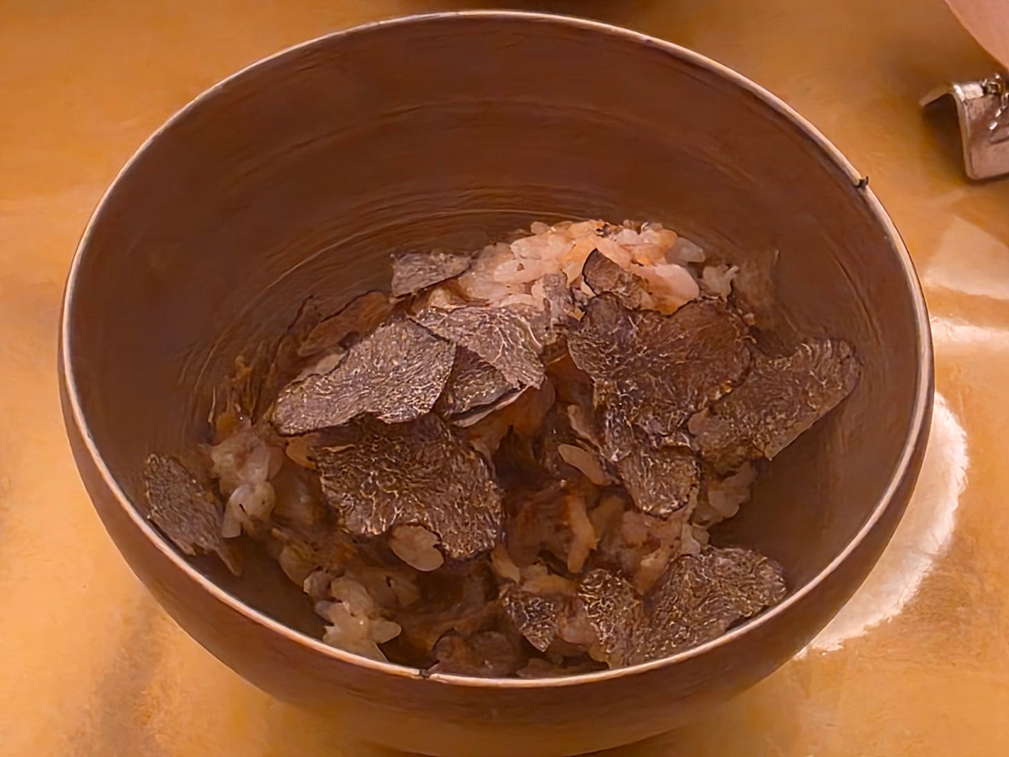 Finally, the other signature dish from the chef, the wagyu beef claypot rice with a soft boiled egg and topped with shaved truffle.