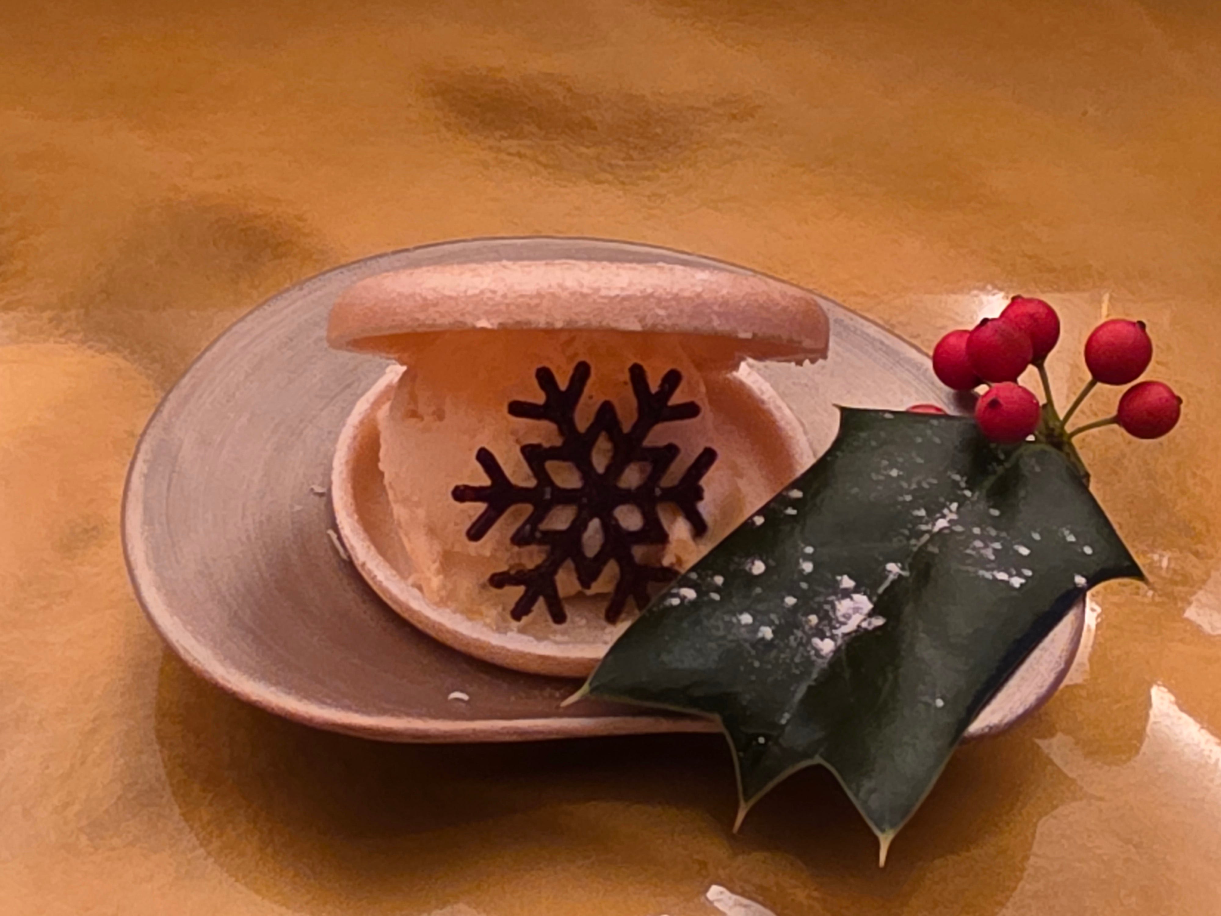 Finally, in seasonal dessert, highlighting the time of season, a scoop of chestnut ice cream sandwiched in the same rice cracker as chicken liver parfait from earlier. Those crispy rice crackers are incredibly versatile - a bit like the larger version of communion crackers, without the long-dated staleness.