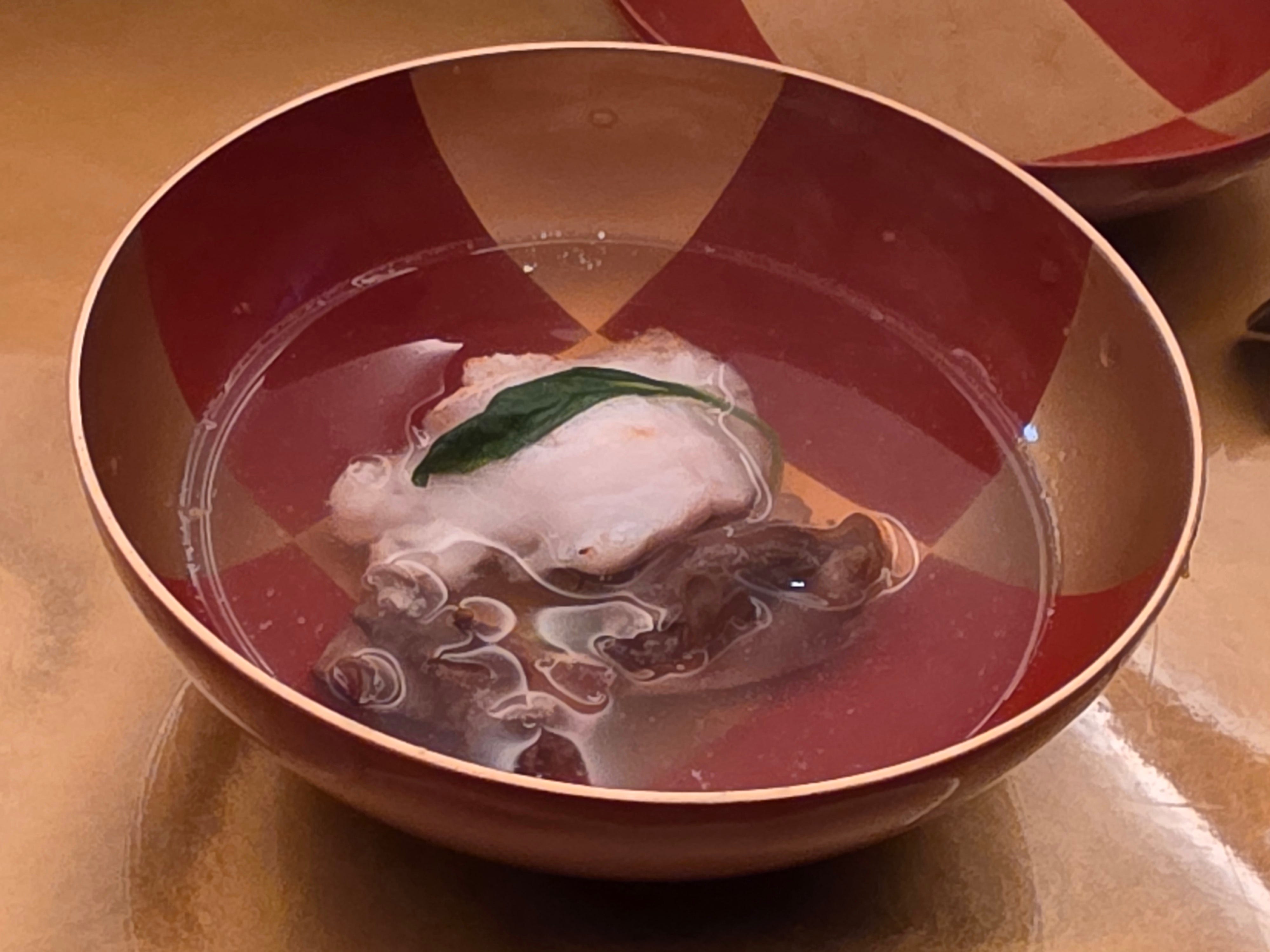 Another deceptively simple dish that shows up on nearly every kaiseki menu. An extremely clarified bonito broth with a few seasonal ingredients. The clarity of the broth makes one assume that the dish would be very light, but the bonito broth packs a hit of smoky umami, highlighting the grilled tilefish and maitake mushrooms.