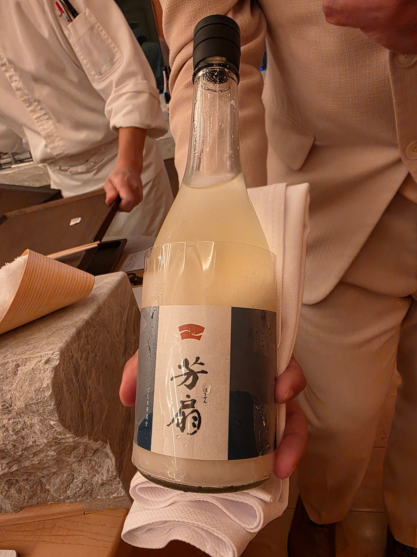 Interestingly, it had the consistency of porridge, with still disenable rice granules. On the sweeter side, but bubbling with the release of carbonation. There’s something about a thick consistency and carbonation that really doesn’t do it for me. We decided to select a more conventional sake instead.