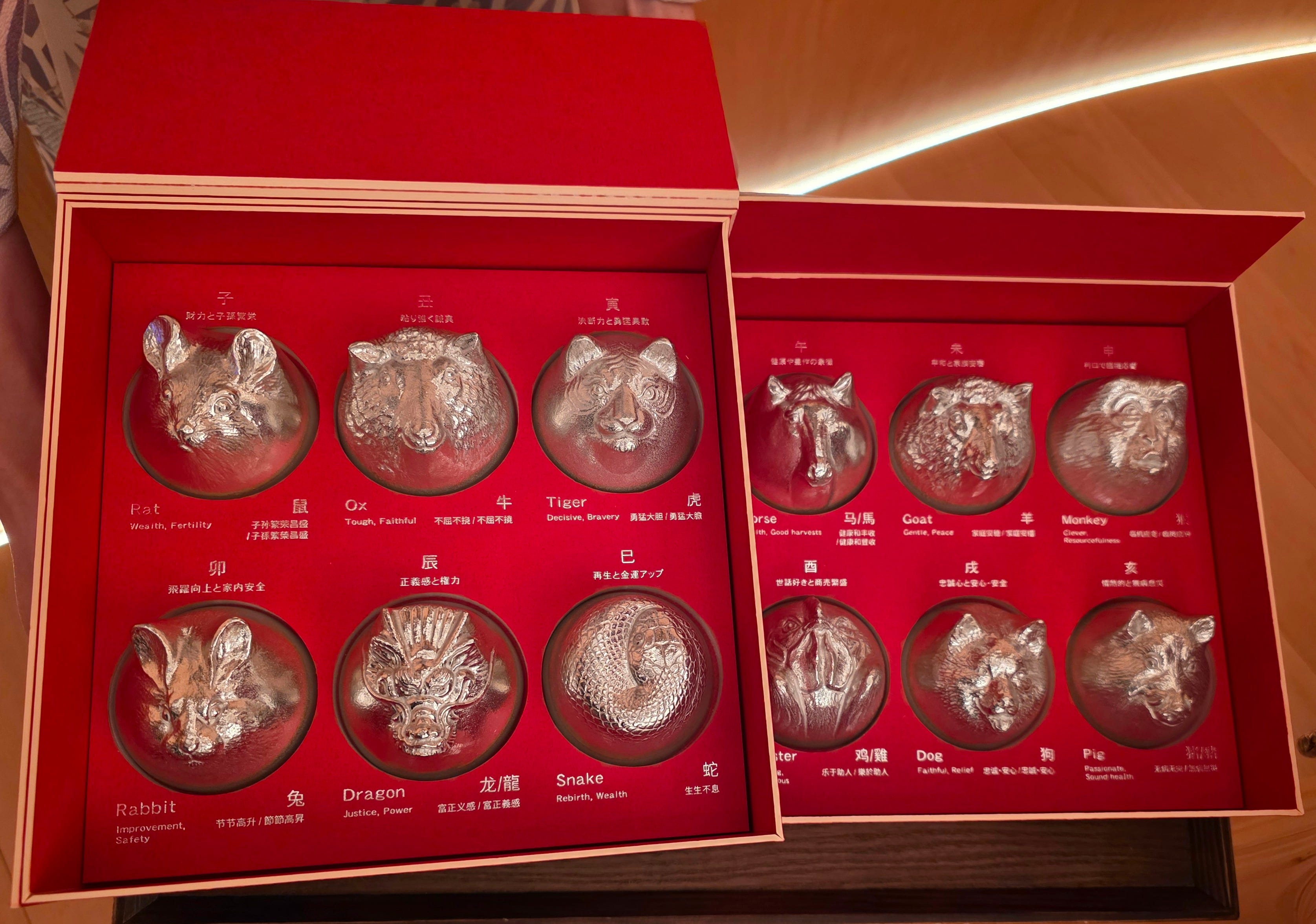 We ordered a bottle of sake, and were asked to select from an arrangement of sake cups corresponding to the Chinese zodiac animals. My companion and I both chose cups that corresponded to our birth year.
