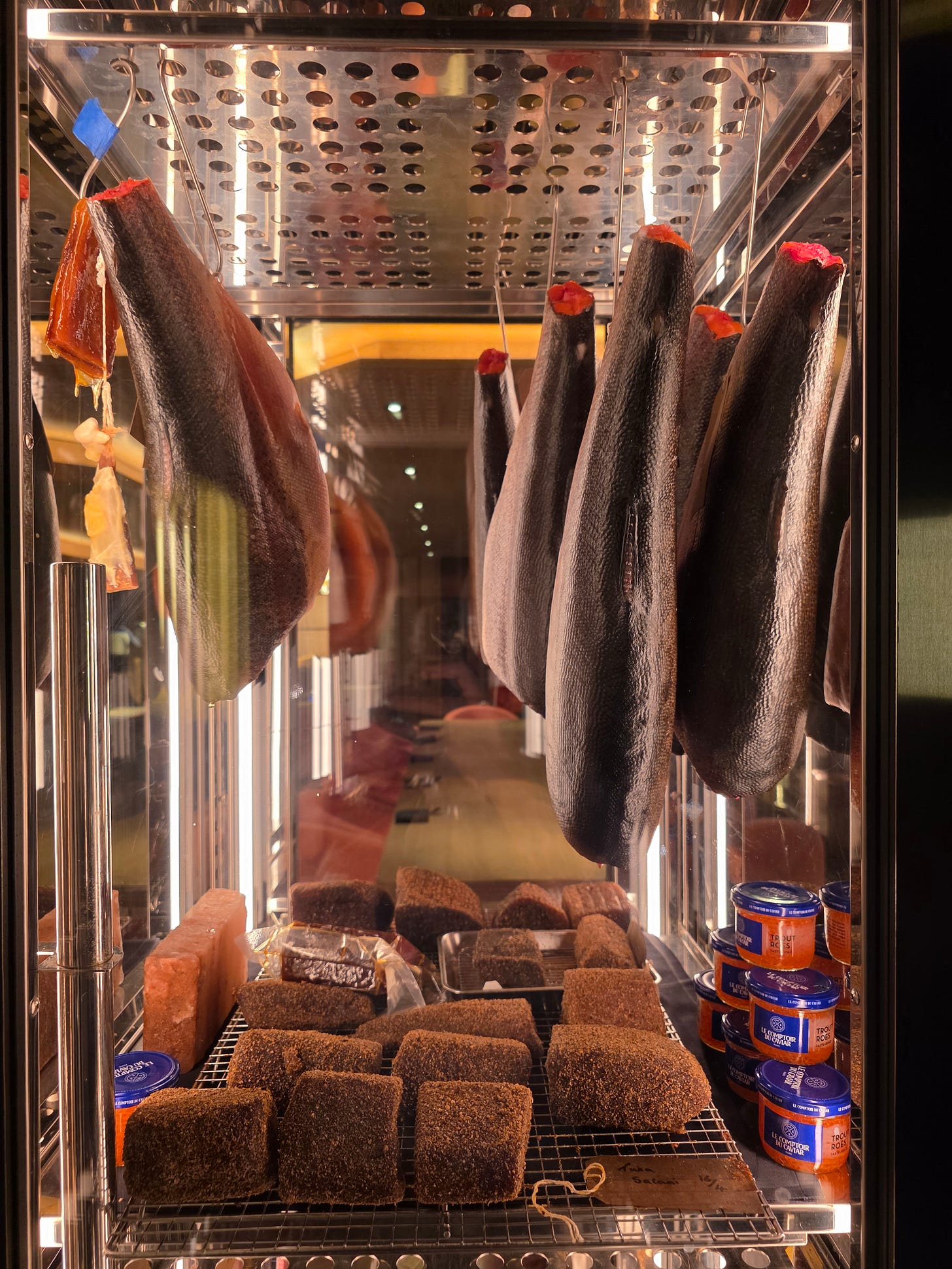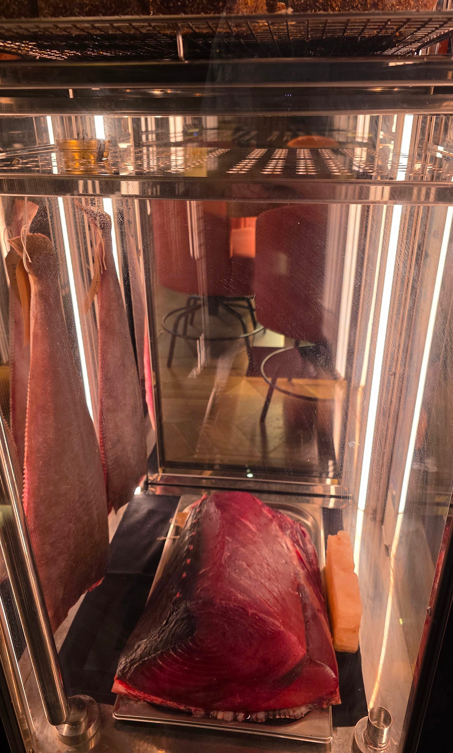 Beneath the restaurant sat some dry-aging refrigerators, with cuts of meat and fish slowly being prepared for their turn in the kitchen upstairs.