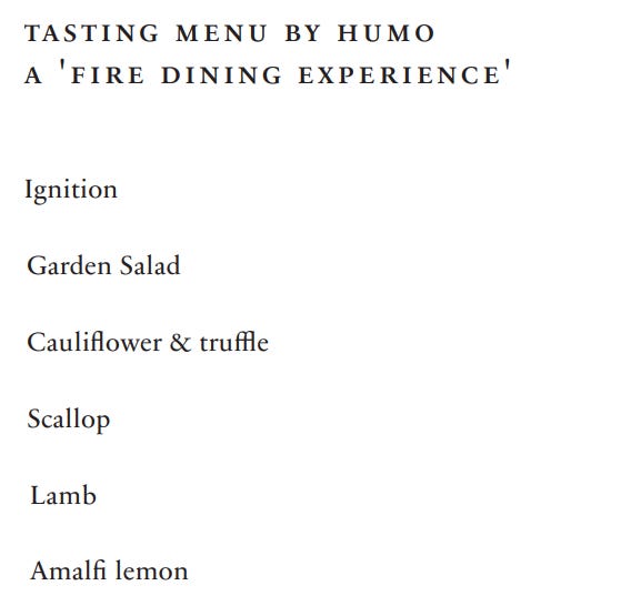 Overall, really neat concept. A lot more delicate and refined than I expected from a place specializing in fire. I was half expecting giant slabs of meat smoking Texas BBQ style or giant steaks over charcoal Hawksmoor style. Instead, Humo highlighted many different techniques using their one giant fire - direct and indirect heat, drying, smoking, roasting, baking. Using everything from different woods in the grill, to the ash after grilling to grow more vegetables. Worth repeating.