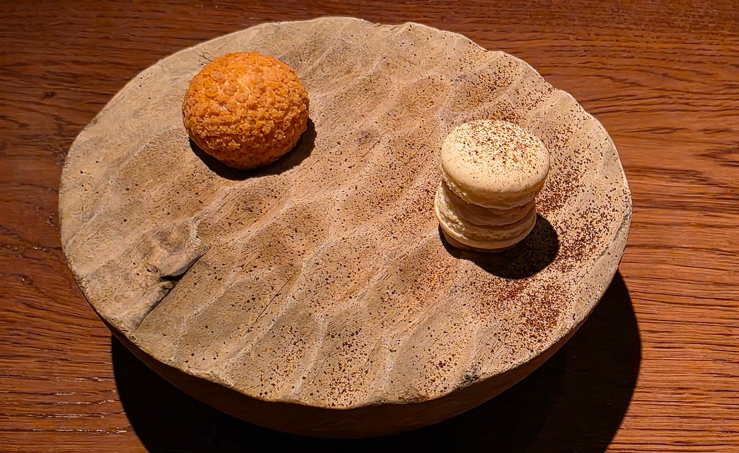 The petit four - a smoky macaron whose underlying flavours I could not discern, perhaps due to the limoncello and the earlier Ume Collins, and a classic choux pastry.