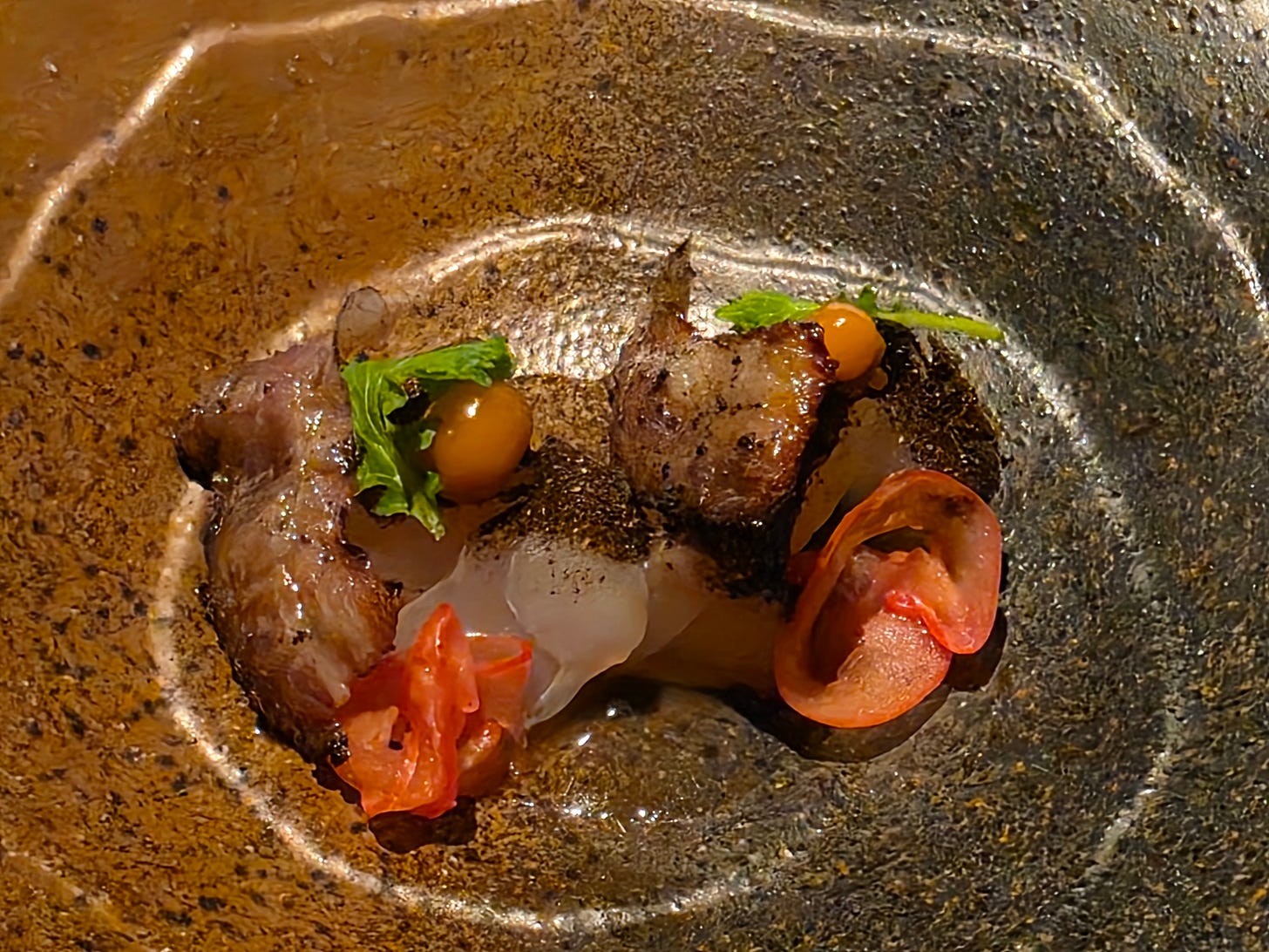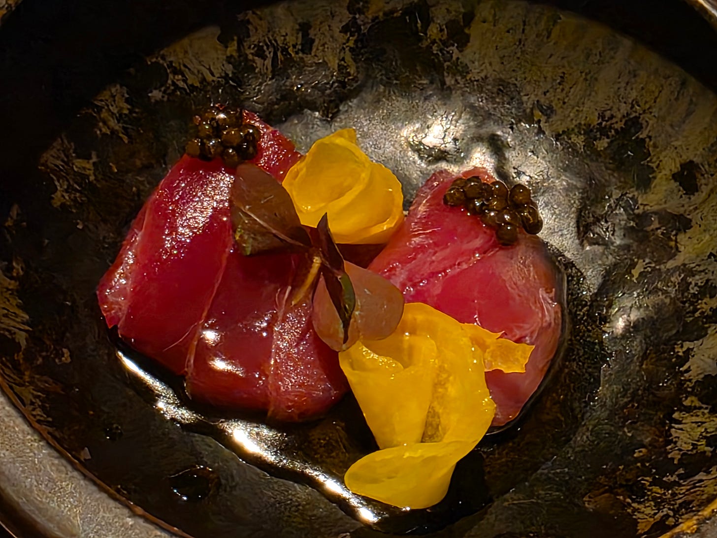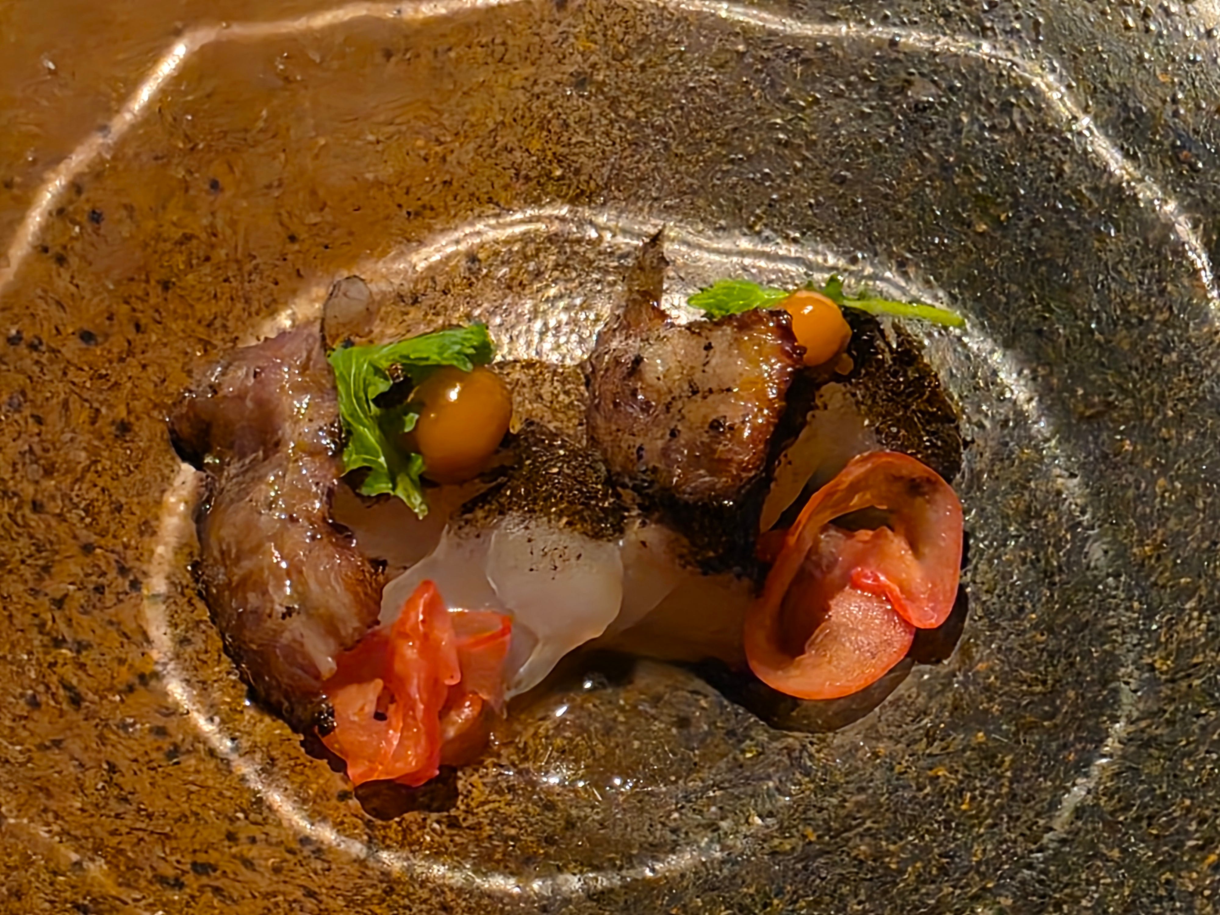 Next was some 5 day aged tuna, with a sweet, smoky dressing, topped with a a small dollop of caviar.