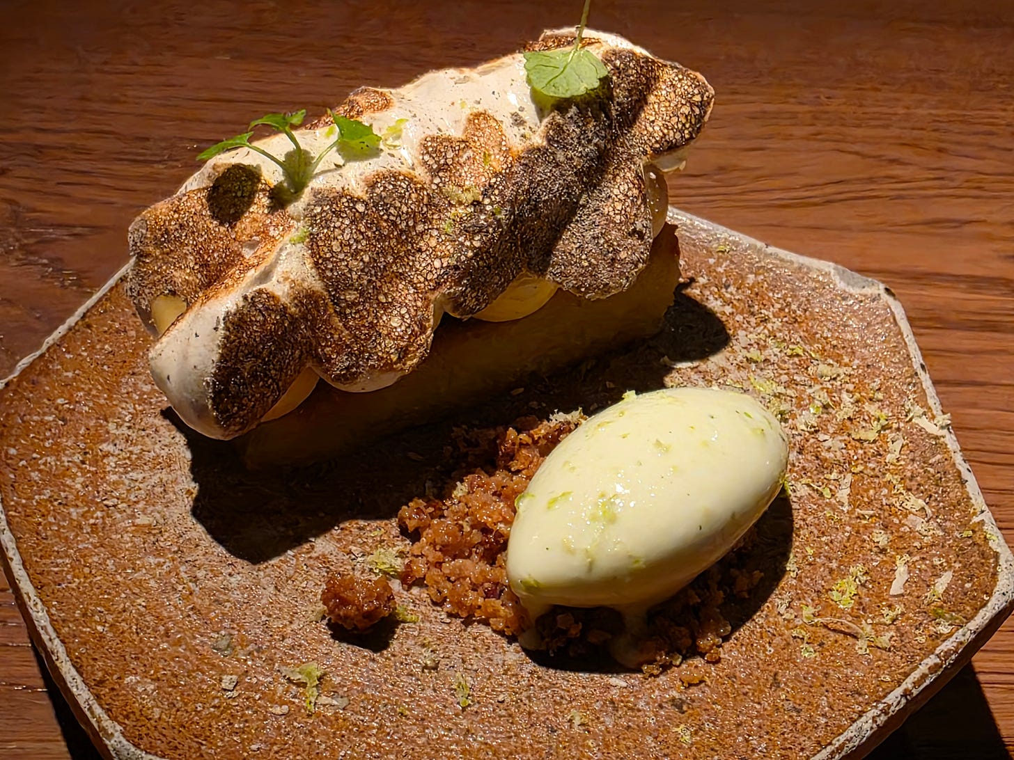 The showstopper was the dessert, highlighting Amalfi lemon. An olive oil sponge topped with a lemon curd and meringue, touched with glowing Binchotan charcoal to caramelize and set the meringue. Served with an lemon ice cream topped with lemon zest. And as if the Ume Collins weren’t already sneaking up on me, dessert was served with a shot of limoncello! Absolute highlight of the meal!