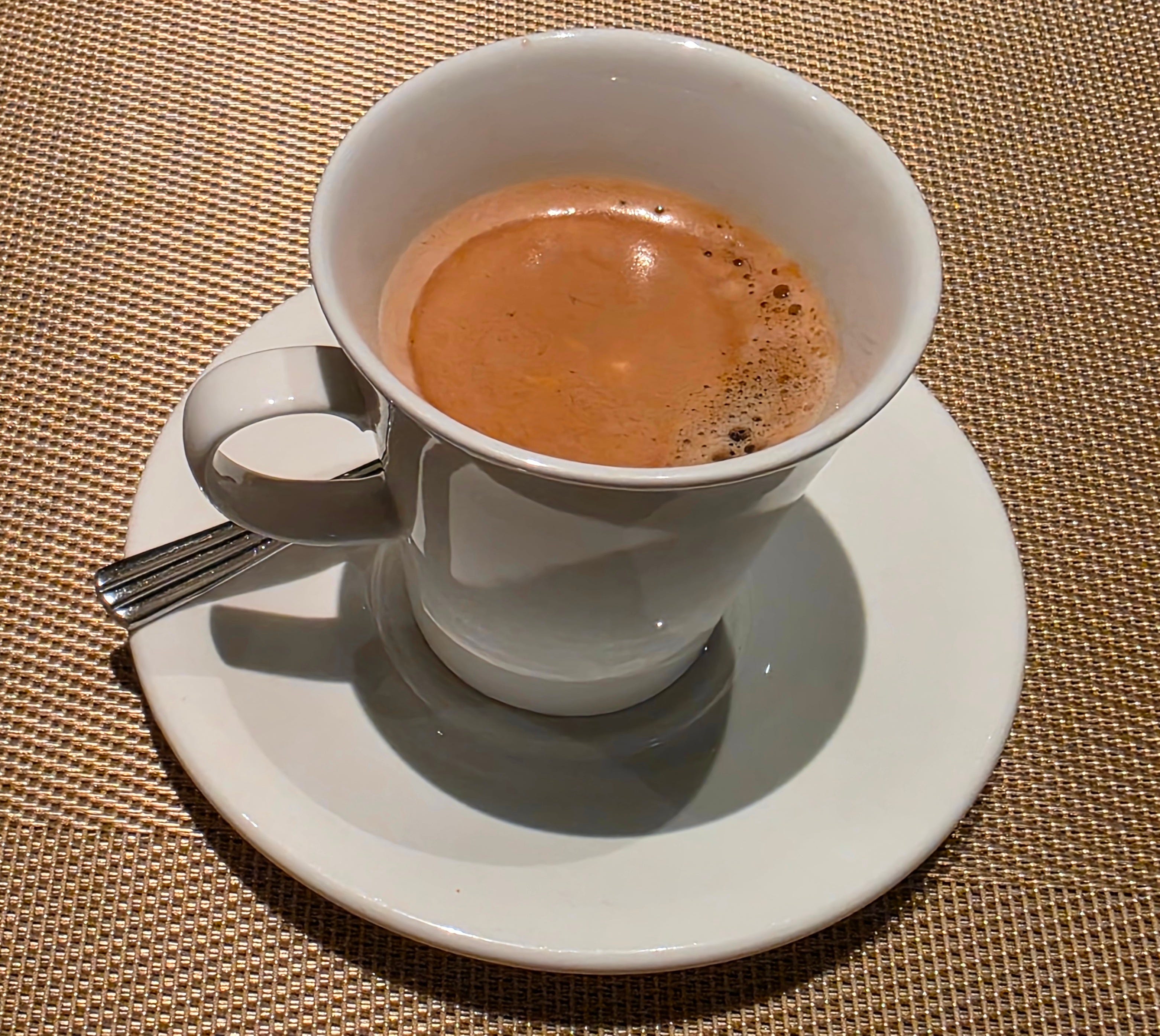 I'm usually not awake before noon, so a lunch reservation required a bit of caffeine to get me going. I asked for a coffee early, but the restaurant didn't have much of a coffee programme; an Americano from a super-automatic was as good as it was going to get.