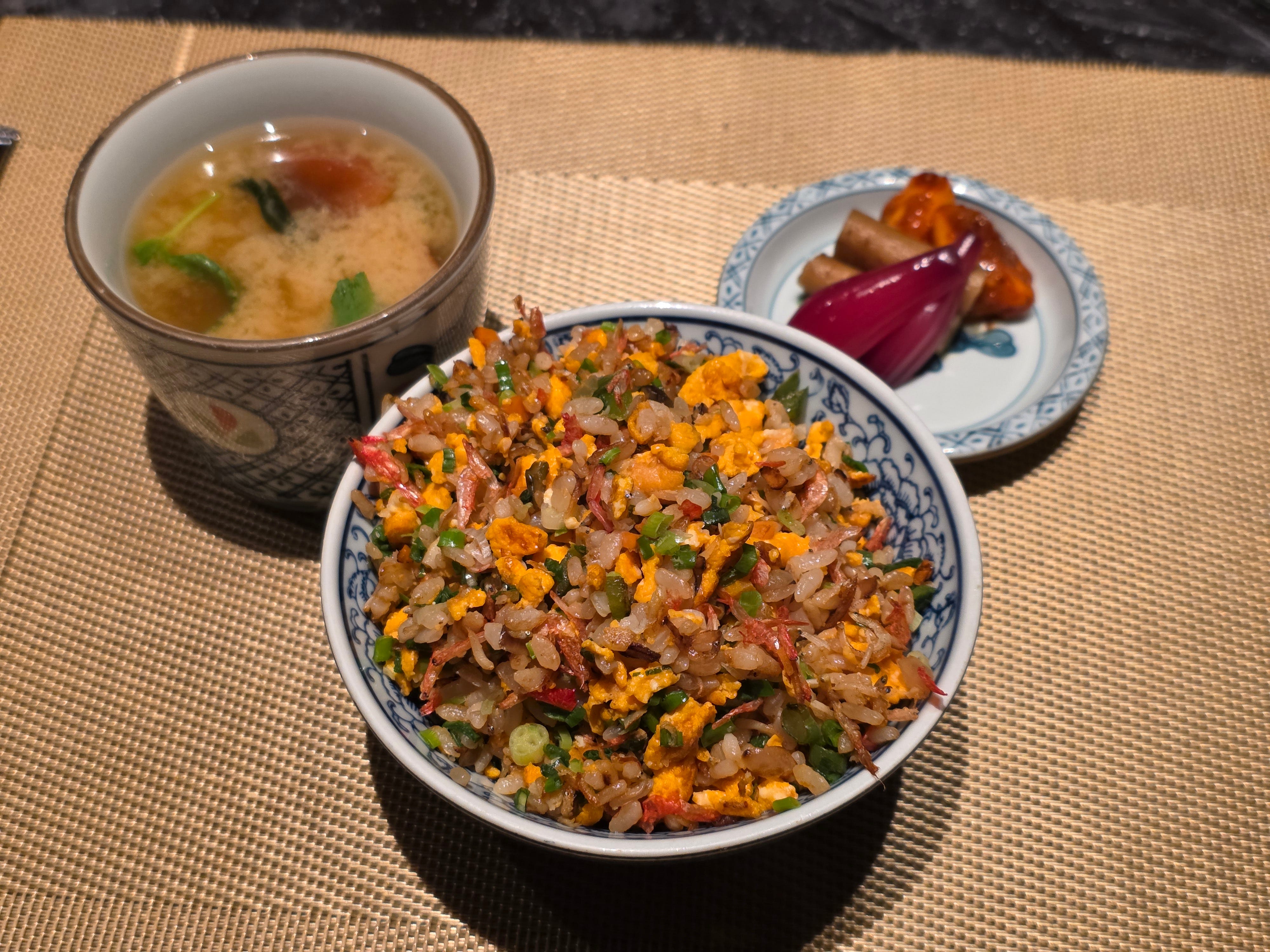 To close the savoury courses, a traditional fried rice with whitebait and dried shrimp, served alongside Japanese pickles, miso soup with giant clams, and a side of fried bean sprouts. Homely, filling, and exactly the right way to land after the parade of premium proteins.