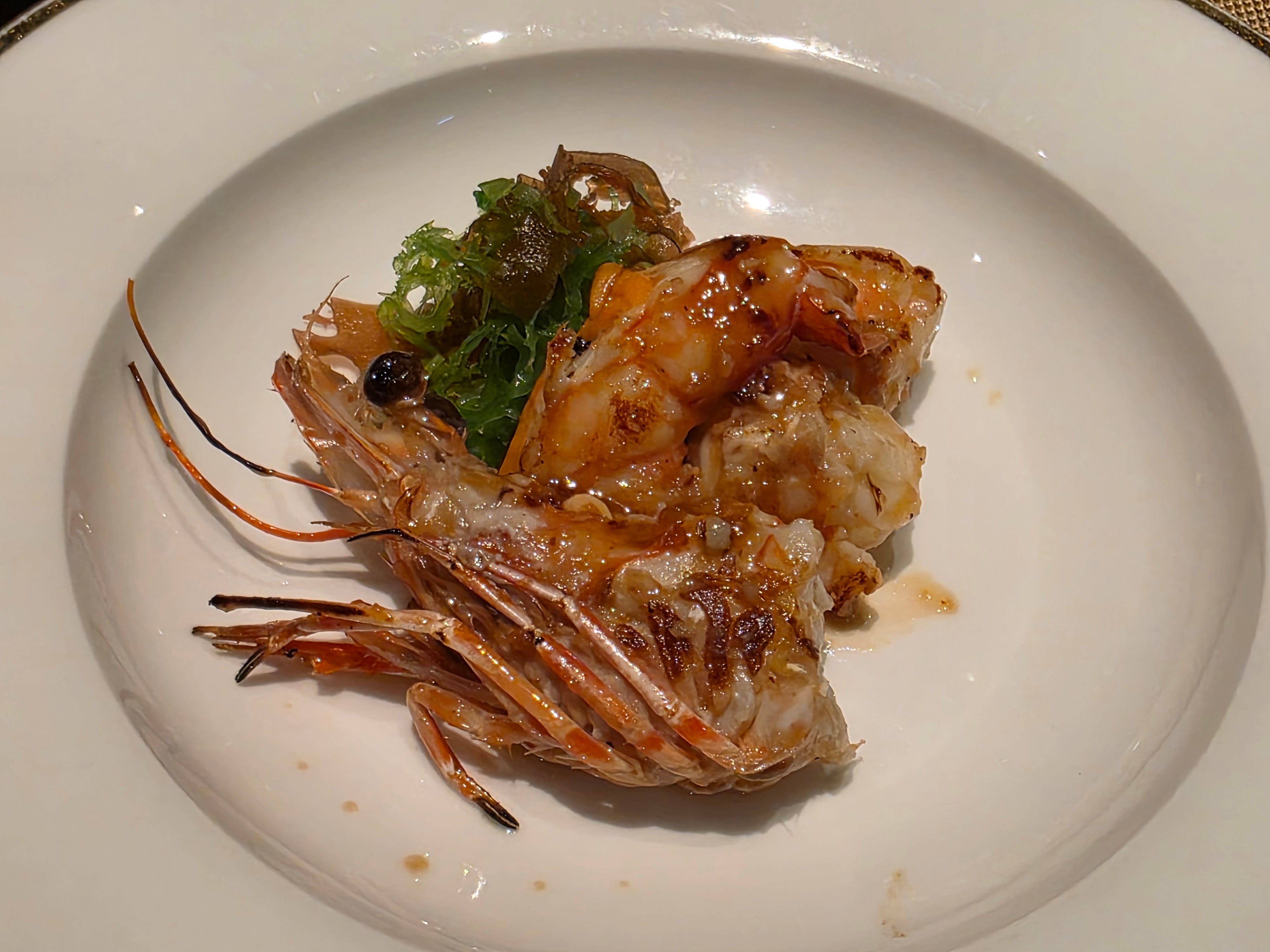 Next, big-head shrimp served on a piece of sea kelp, followed by abalone on kelp with an abalone liver sauce. Both were clean and well-executed, letting the ingredients do the talking.