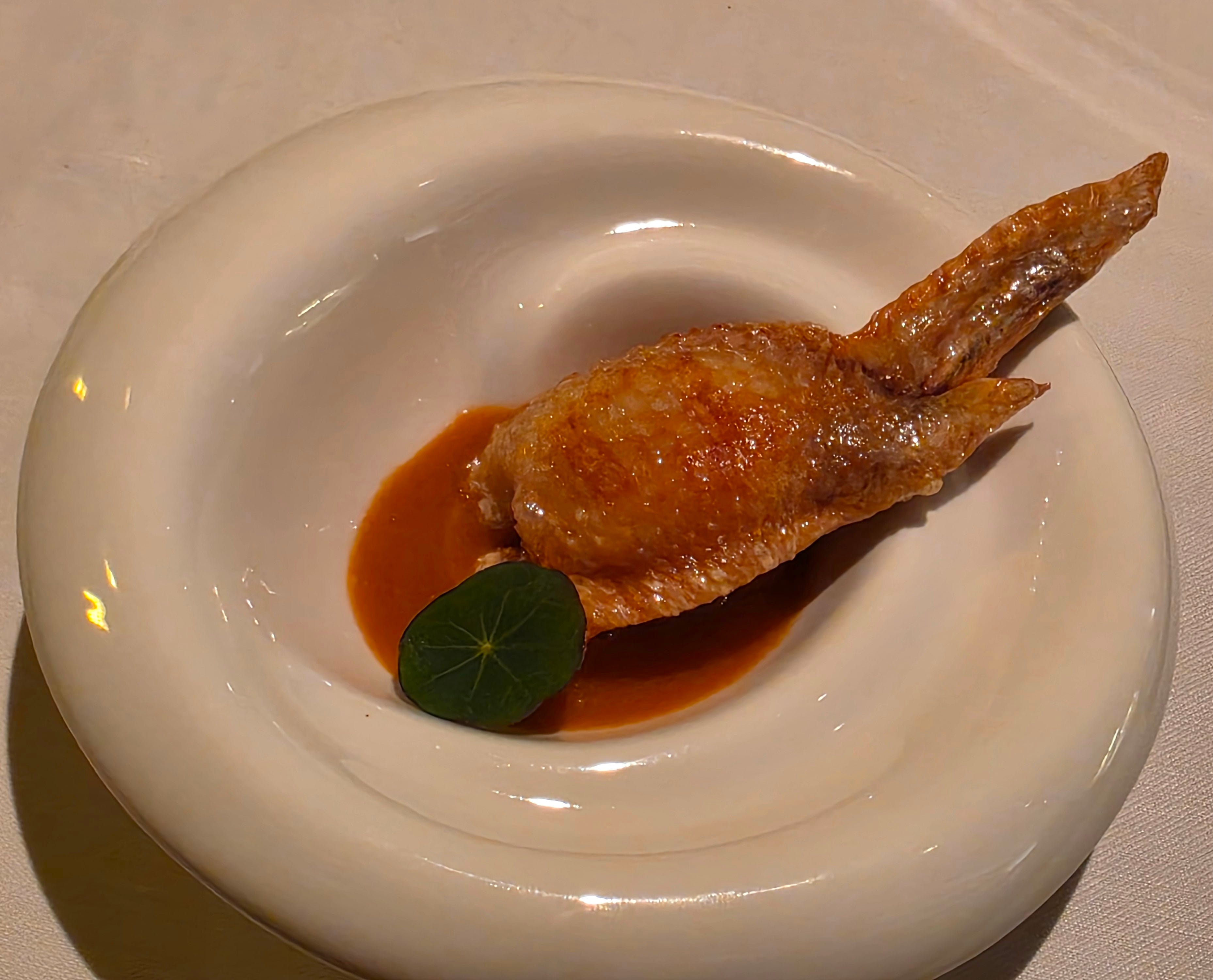 The last of the set was a chicken wing stuffed with shrimp roe in a lobster bisque sauce, its preparation strikingly close to Bo Innovation’s.