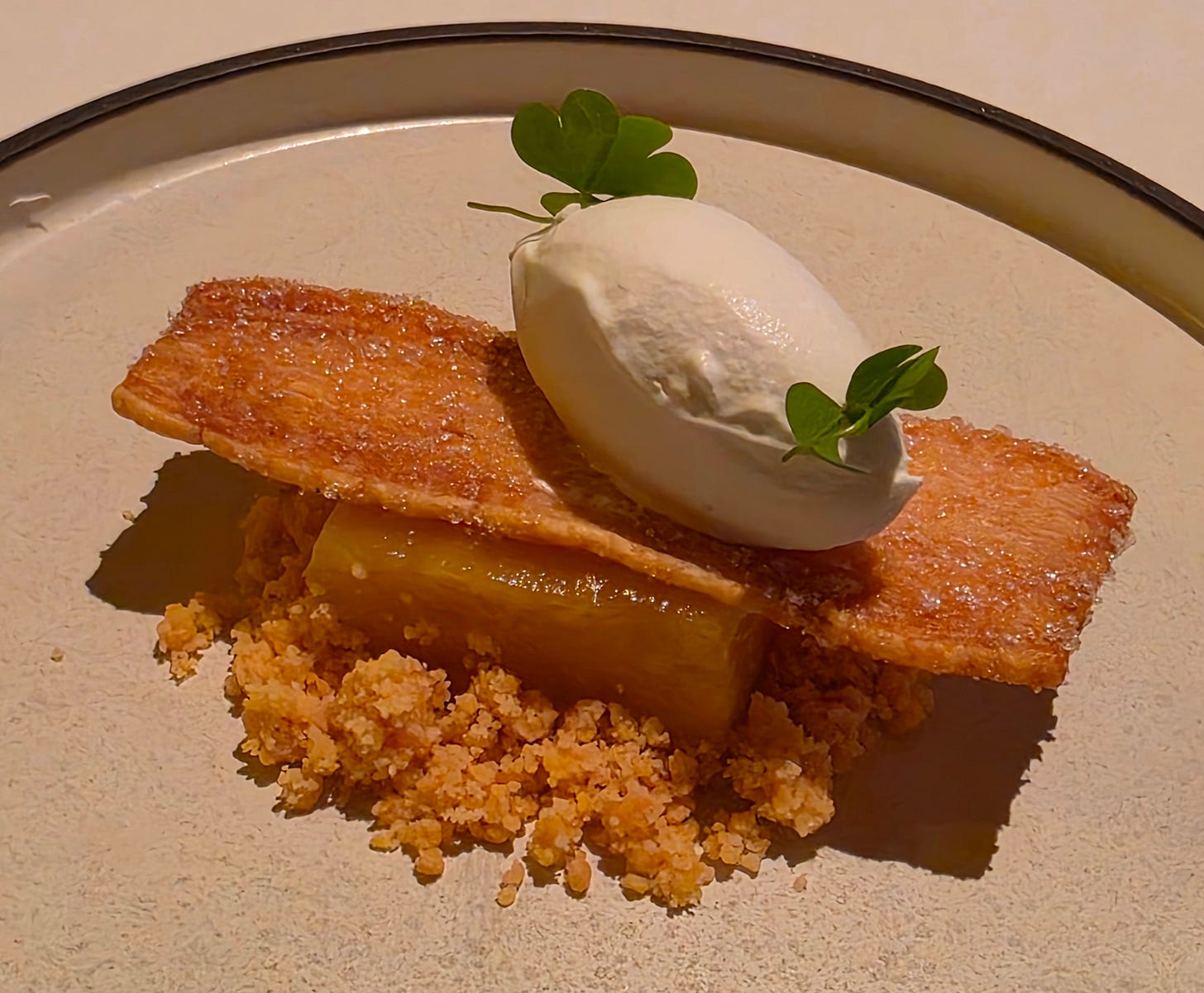 The one dish that did not work for me was the palate cleanser: a thick caramel with corn spooned over ice. The flavour combination called to mind a country fair, but the sticky, intense caramel did little to actually clear the palate.