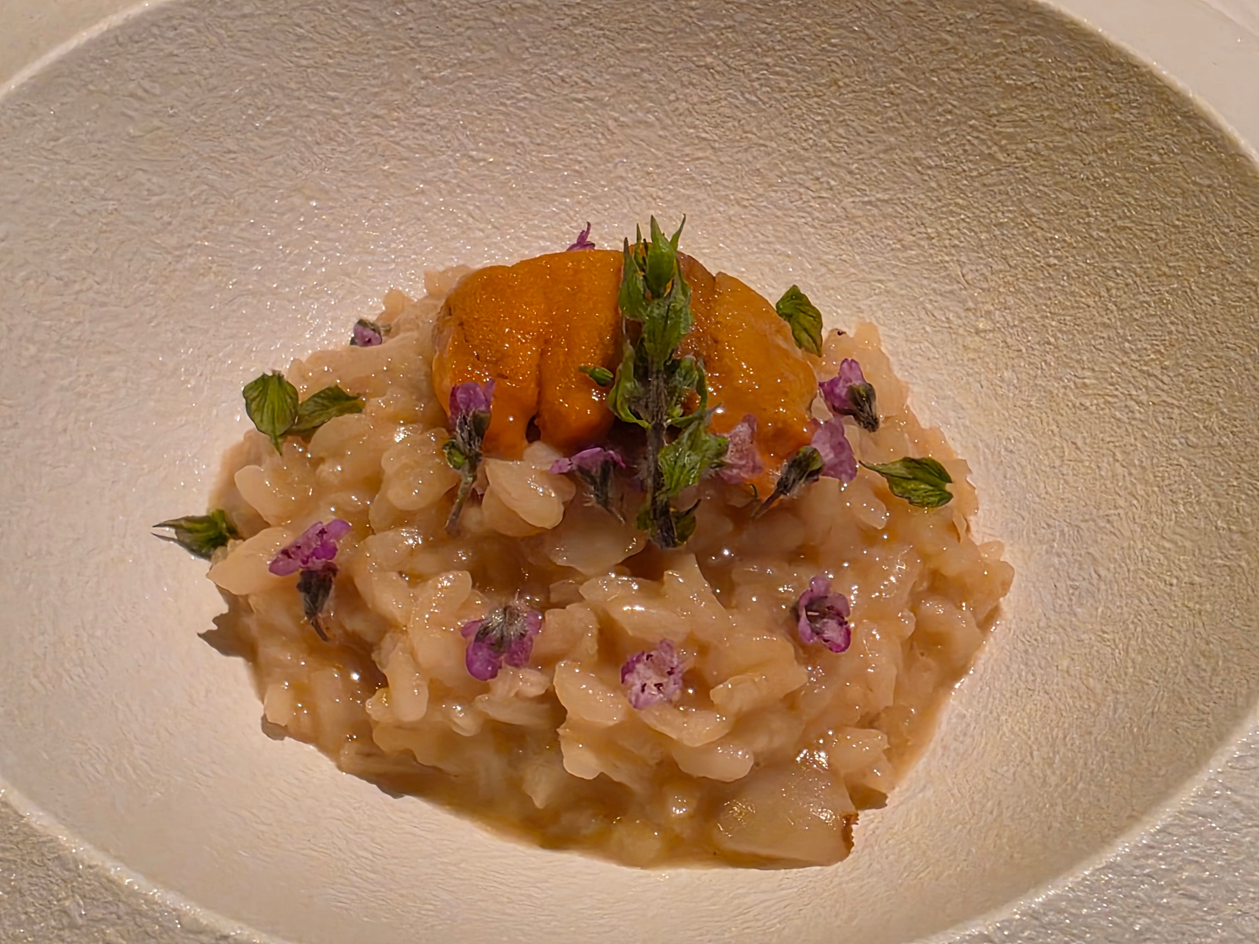 A risotto came next, studded with ginkgo nut, lily bulb, and bafun uni (the bright orange, creamy roe from Hokkaido's small sea urchins). Lush and full of the sea.