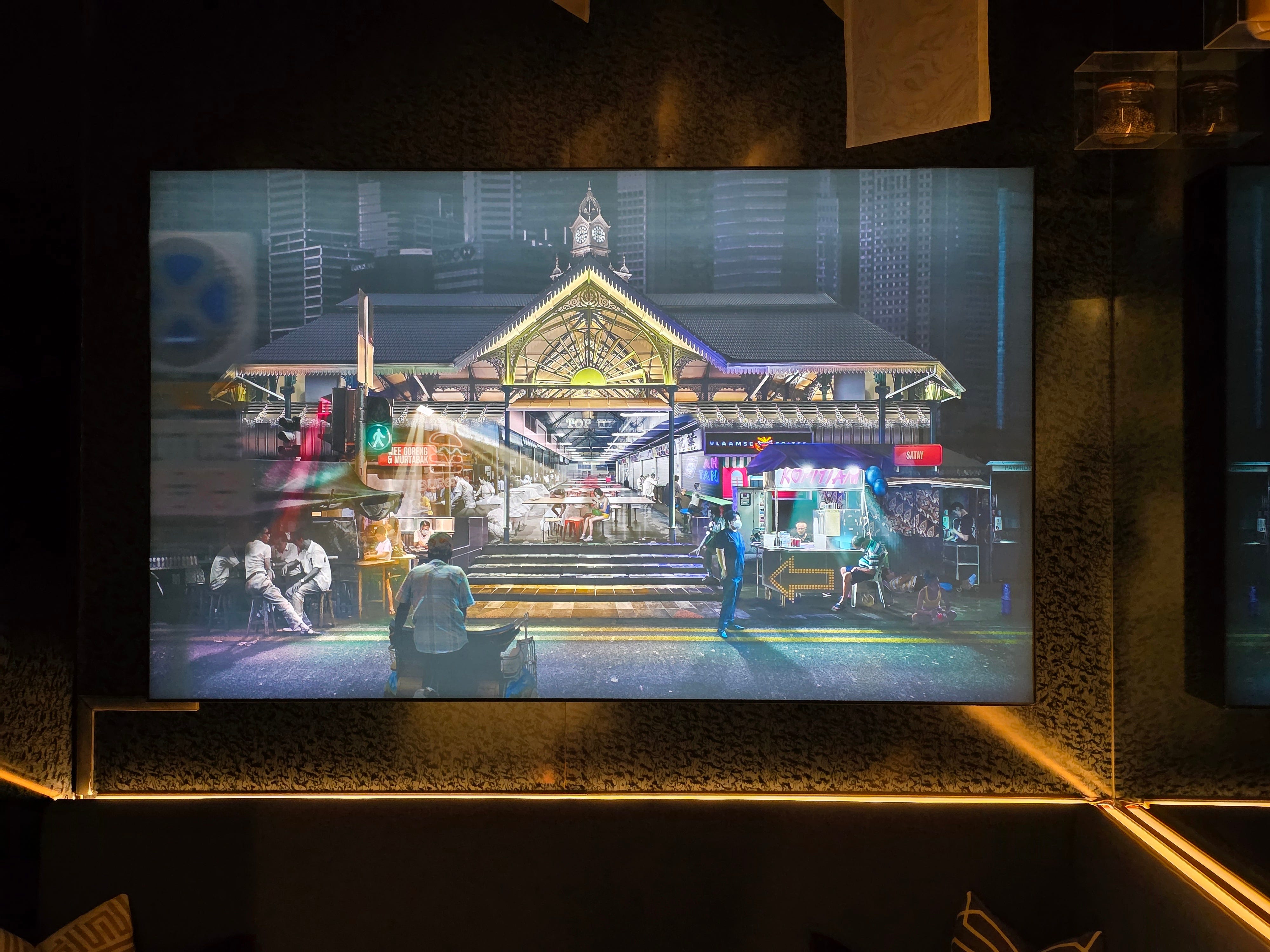 Once inside, the waiting room features a photo of a historic Singaporean hawker center, Lau Pa Sat. The composite, formed with many different pictures over the years features both old and new, with the interior taken from before the recent reno, a look at Satay Street, and featuring some of the new stalls that have entered the hawker center. The picture highlights the essence of Labyrinth - a composite of the unique and delicious Singaporean food culture.