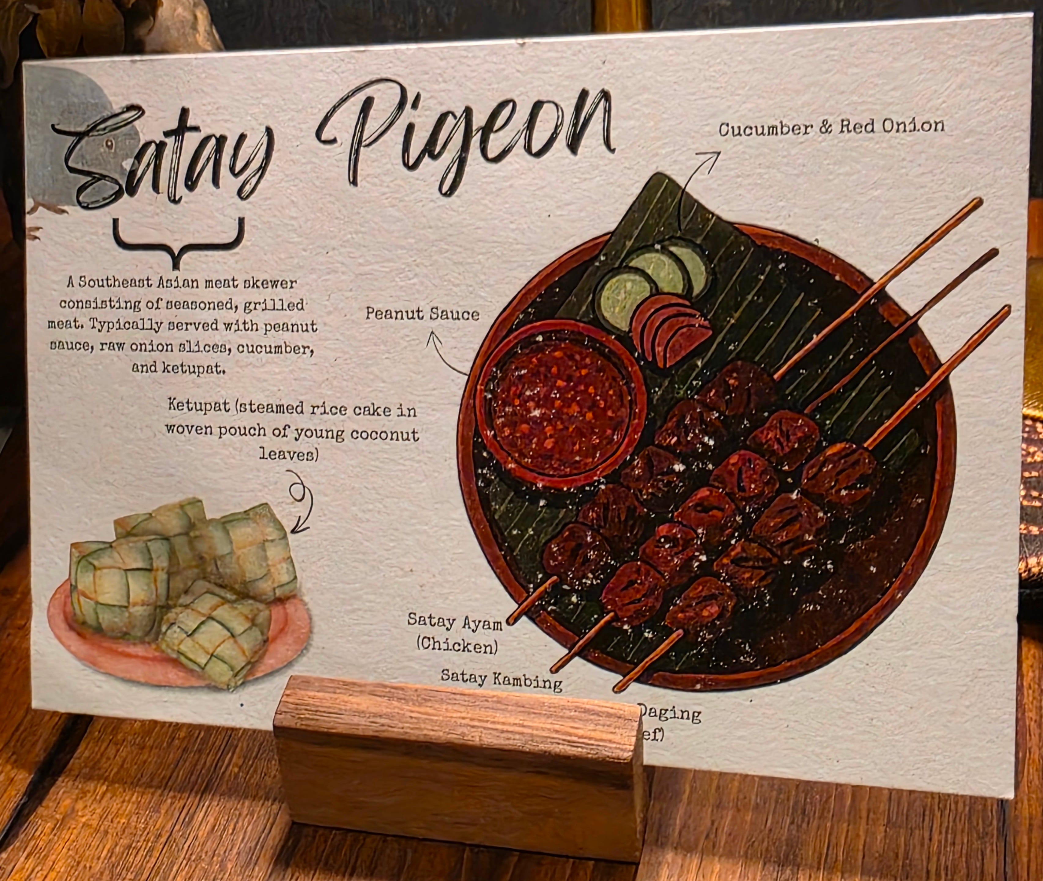 For the main, a take on another Singaporean street food, satay. Except this time, instead of beef or lamb or chicken, they used pigeon. Prepared with a sweet glaze and accompanied by the normal sauces, a pigeon leg and breast served with a little square of glutinous rice in the classic satay preparation. Another big hit!