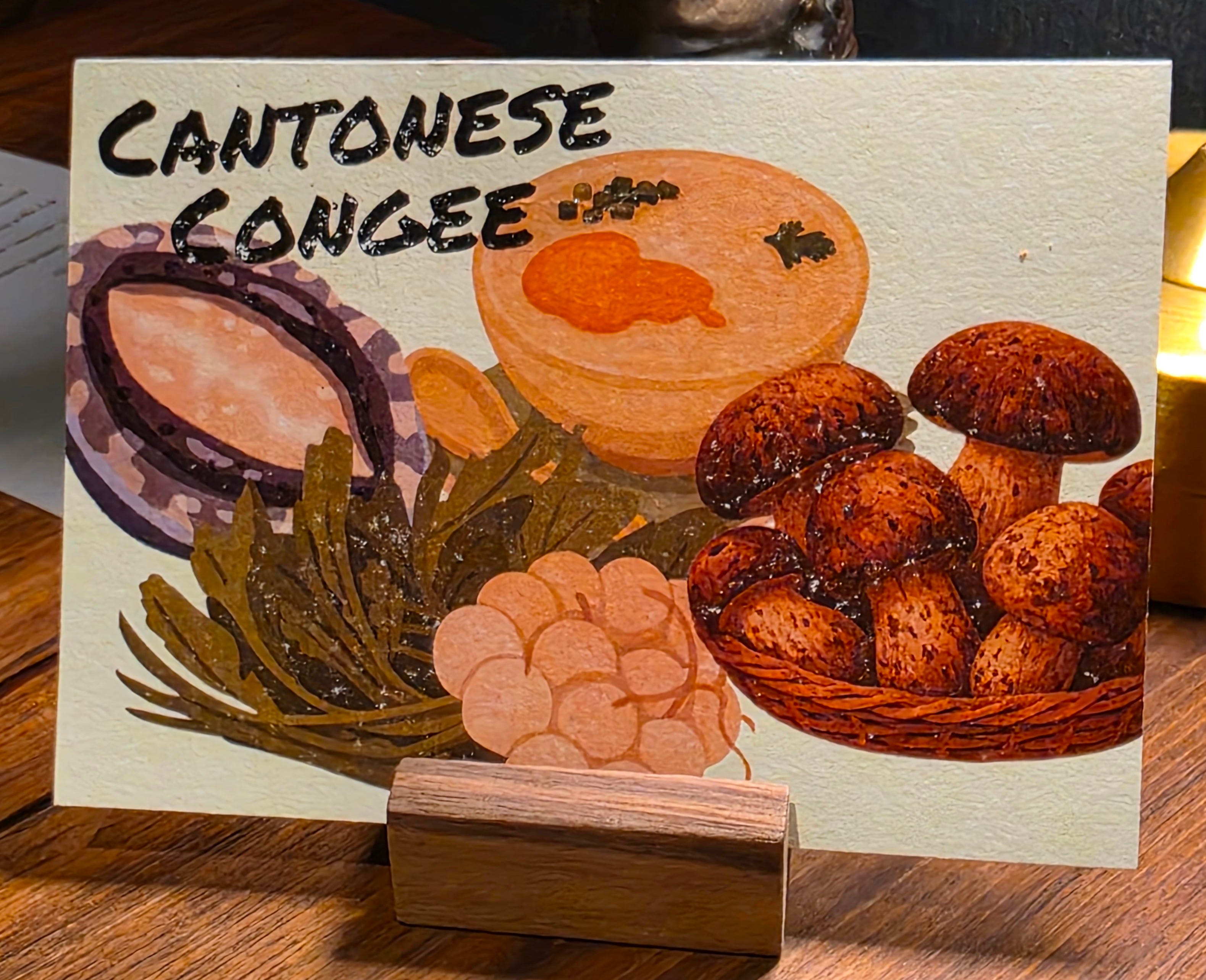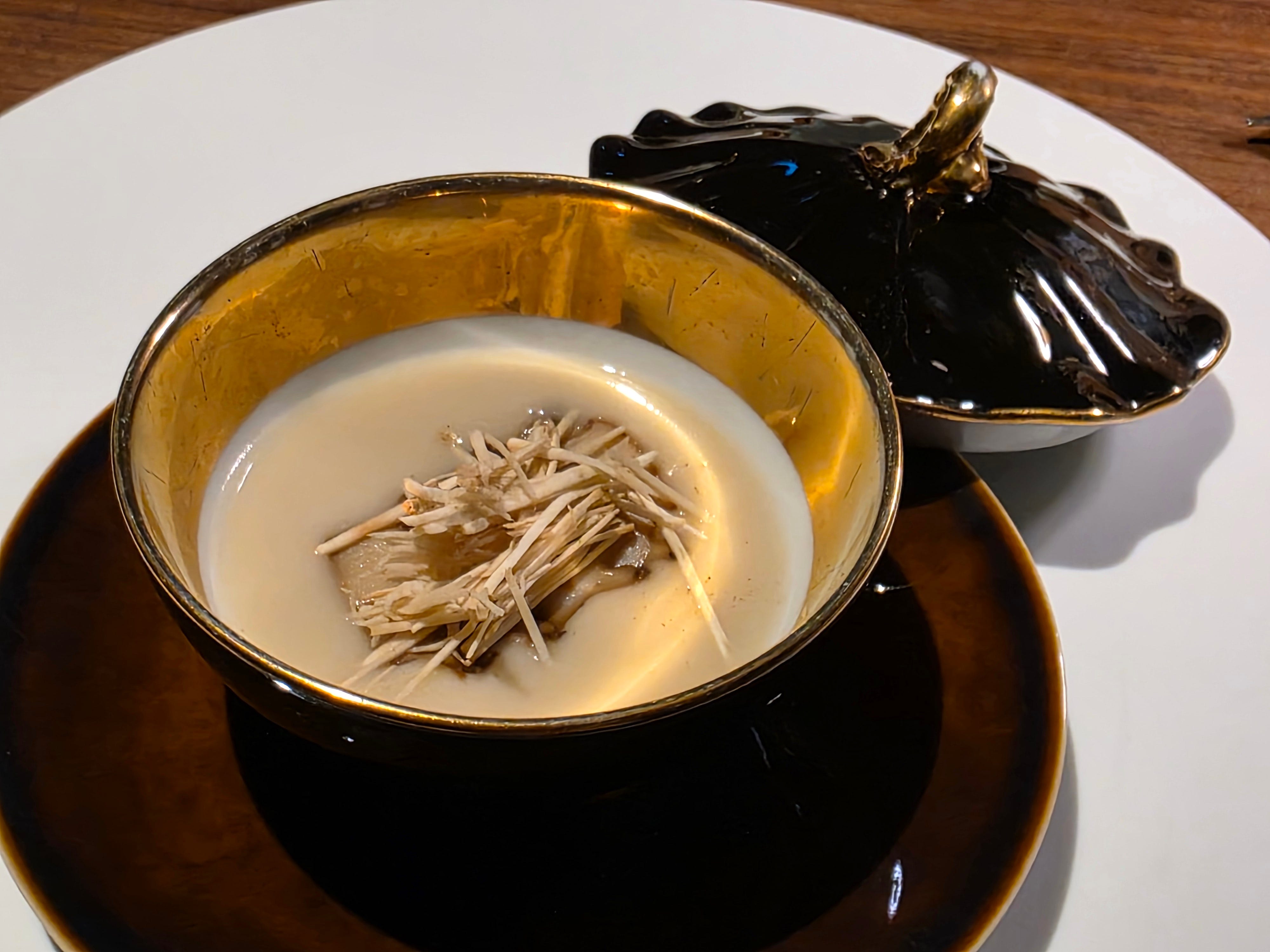 A variation on the Cantonese congee, except made with turnip instead of rice. A thick, filling porridge topped with matsutake mushrooms.