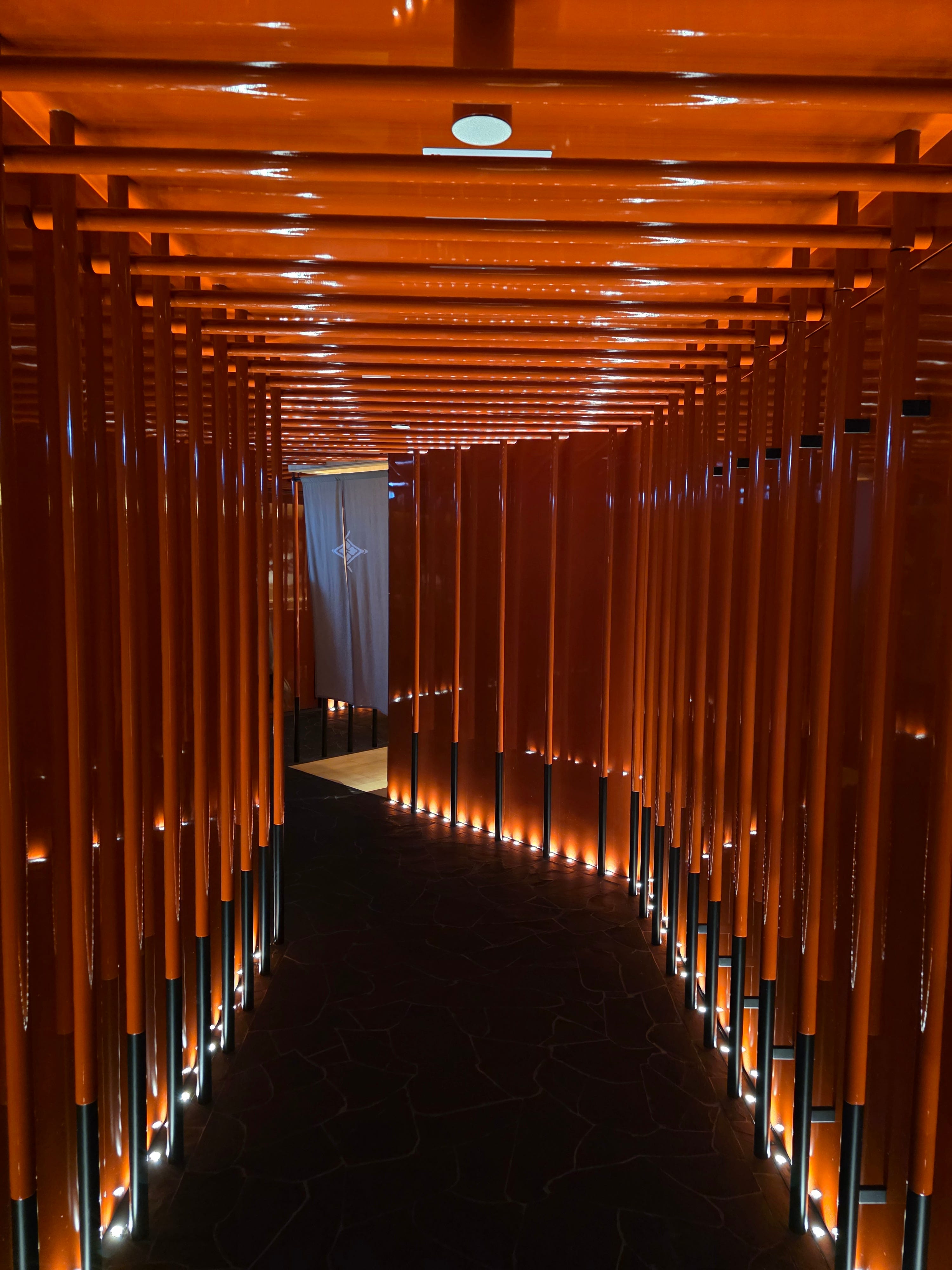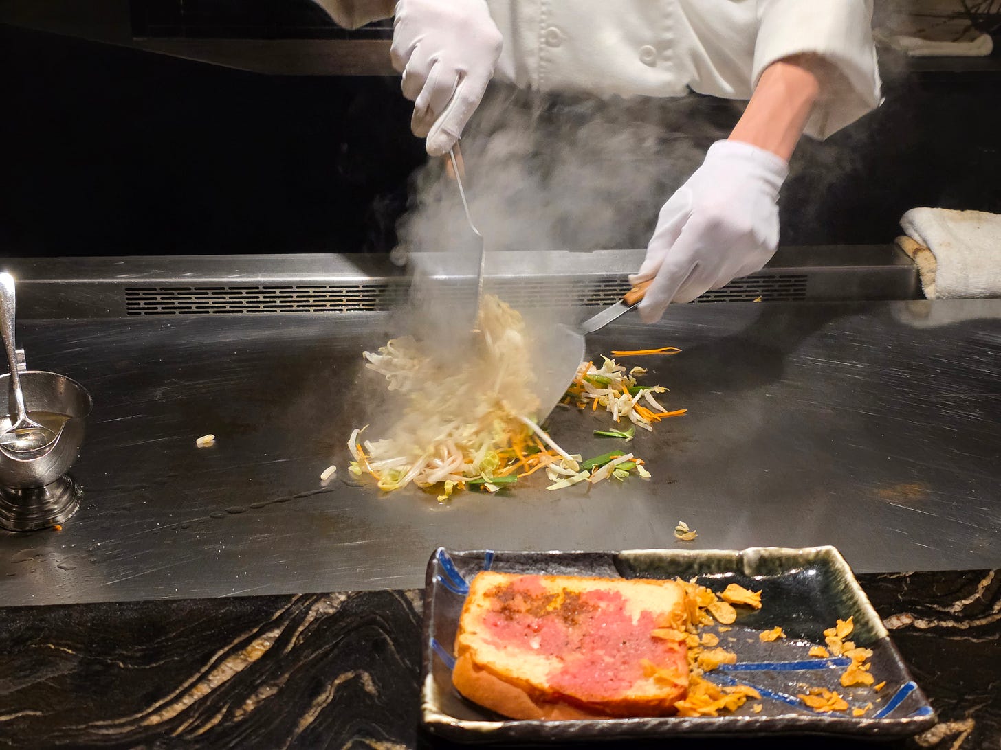 Down a hallway motif of Kyoto’s red torii gate shrine, the restaurant was a lot larger than I originally expected, with regular dining areas, as well as multiple teppanyaki grills.