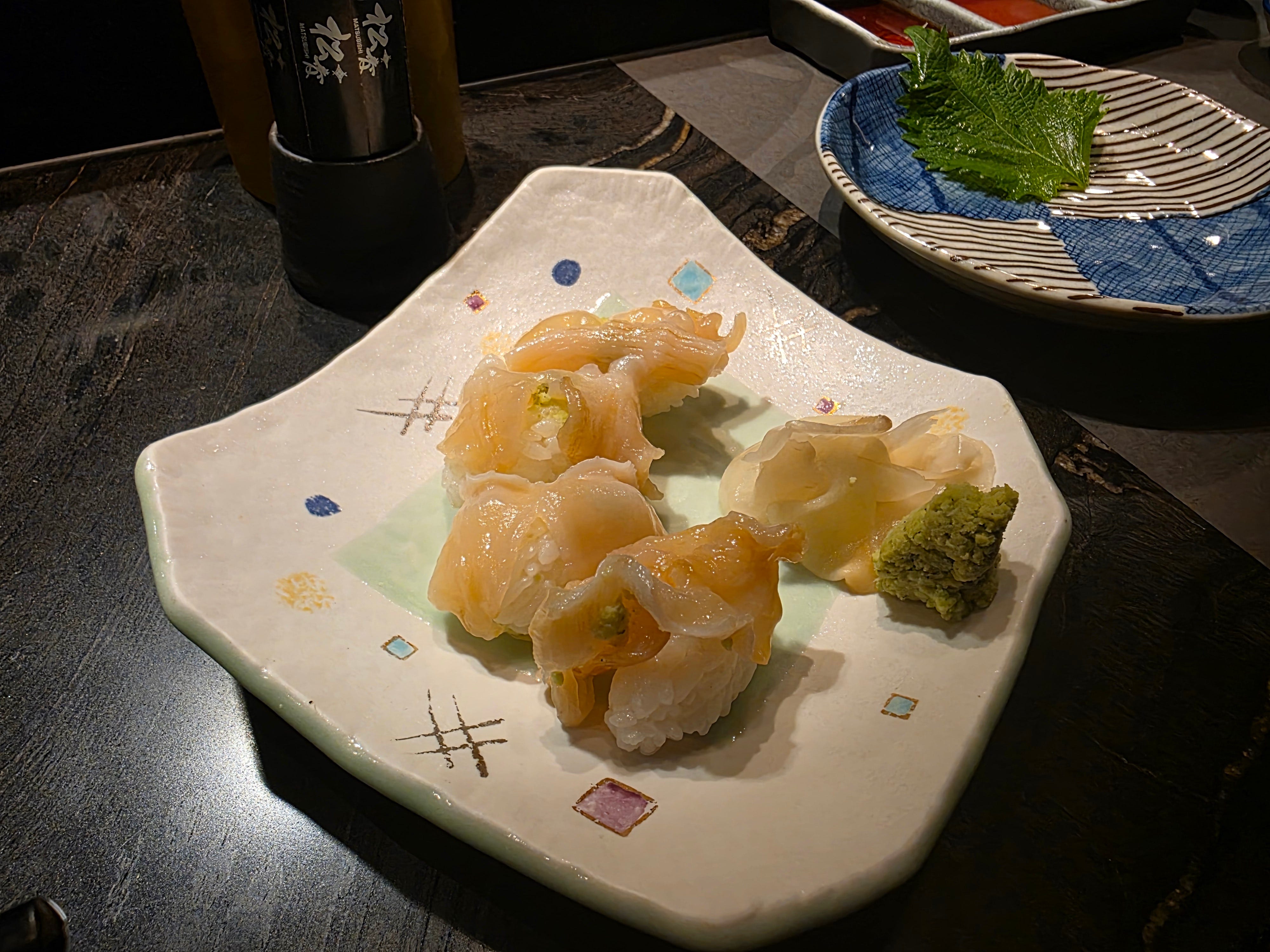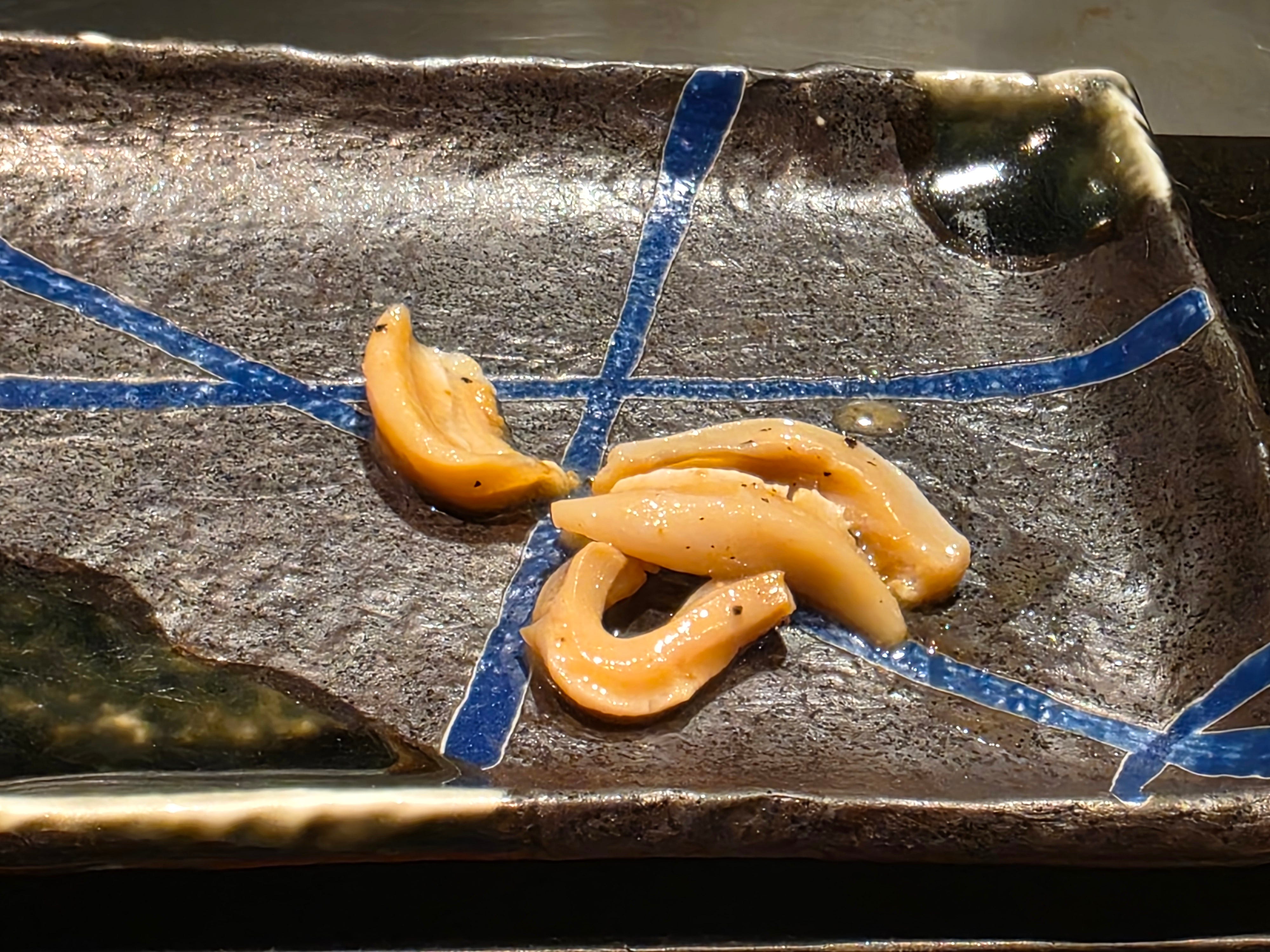 Off menu, we decided to get an geoduck, and have it served two ways. First, made into nigiri.