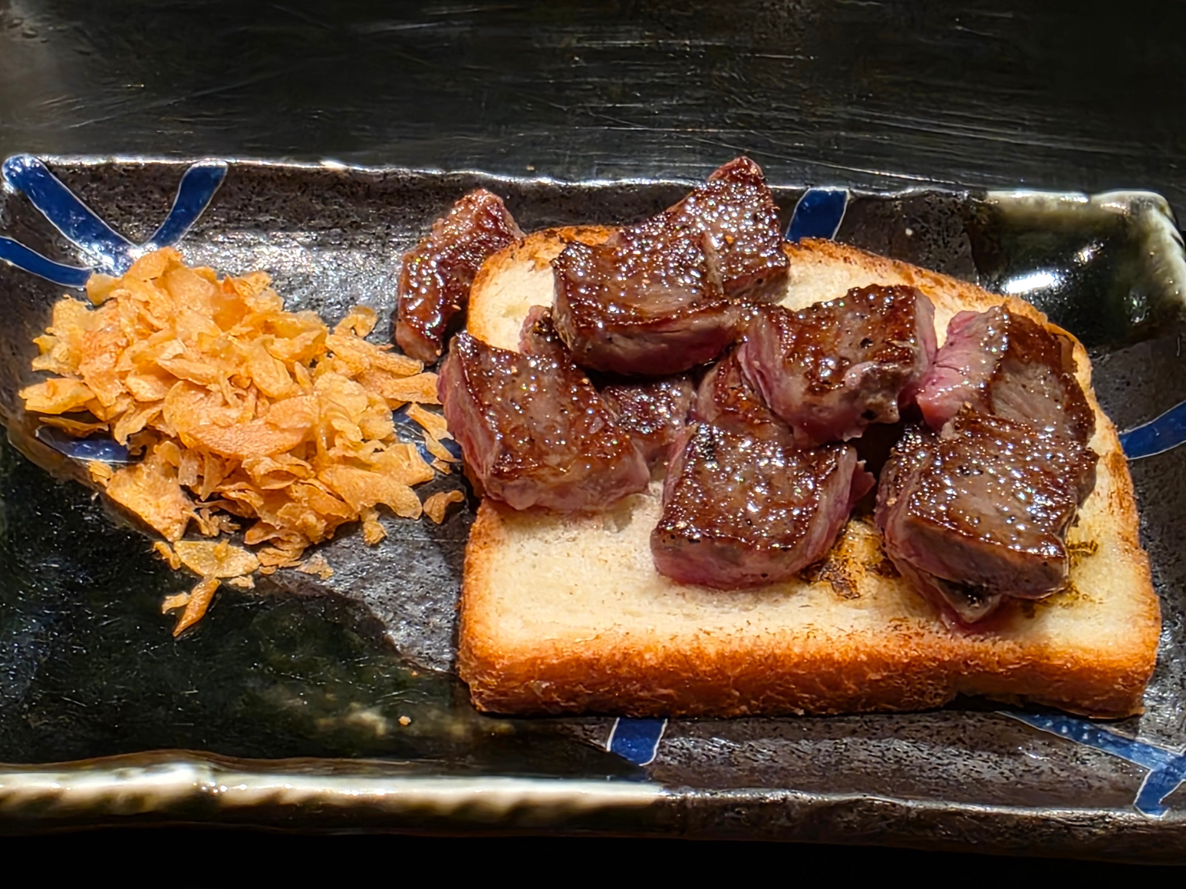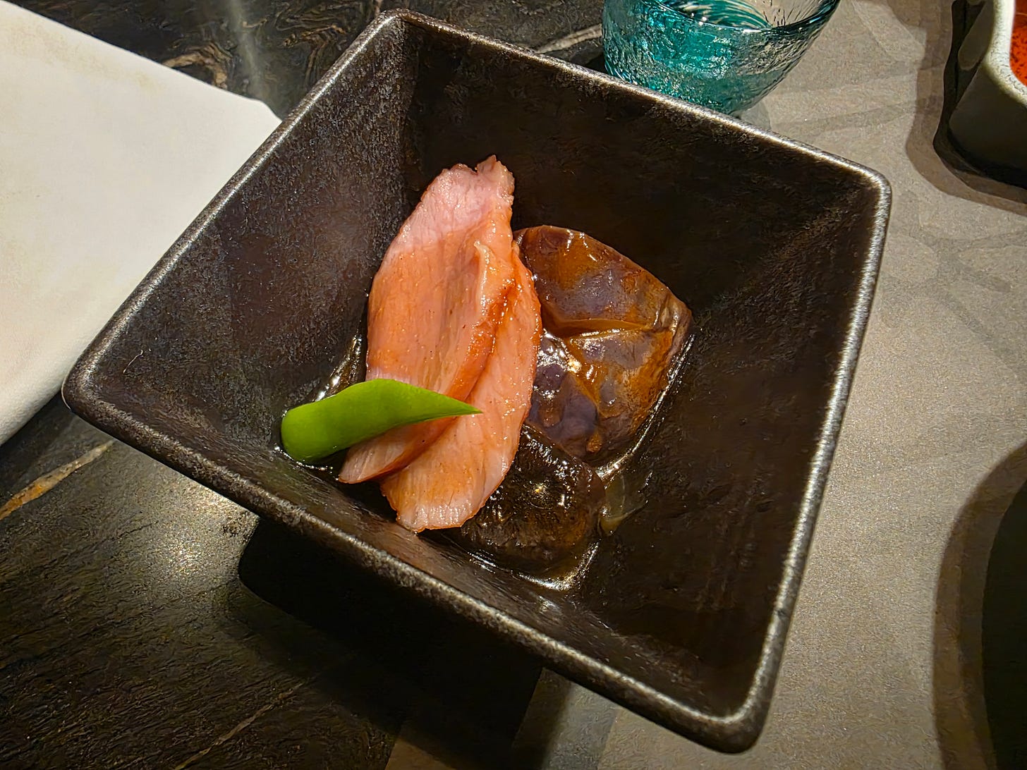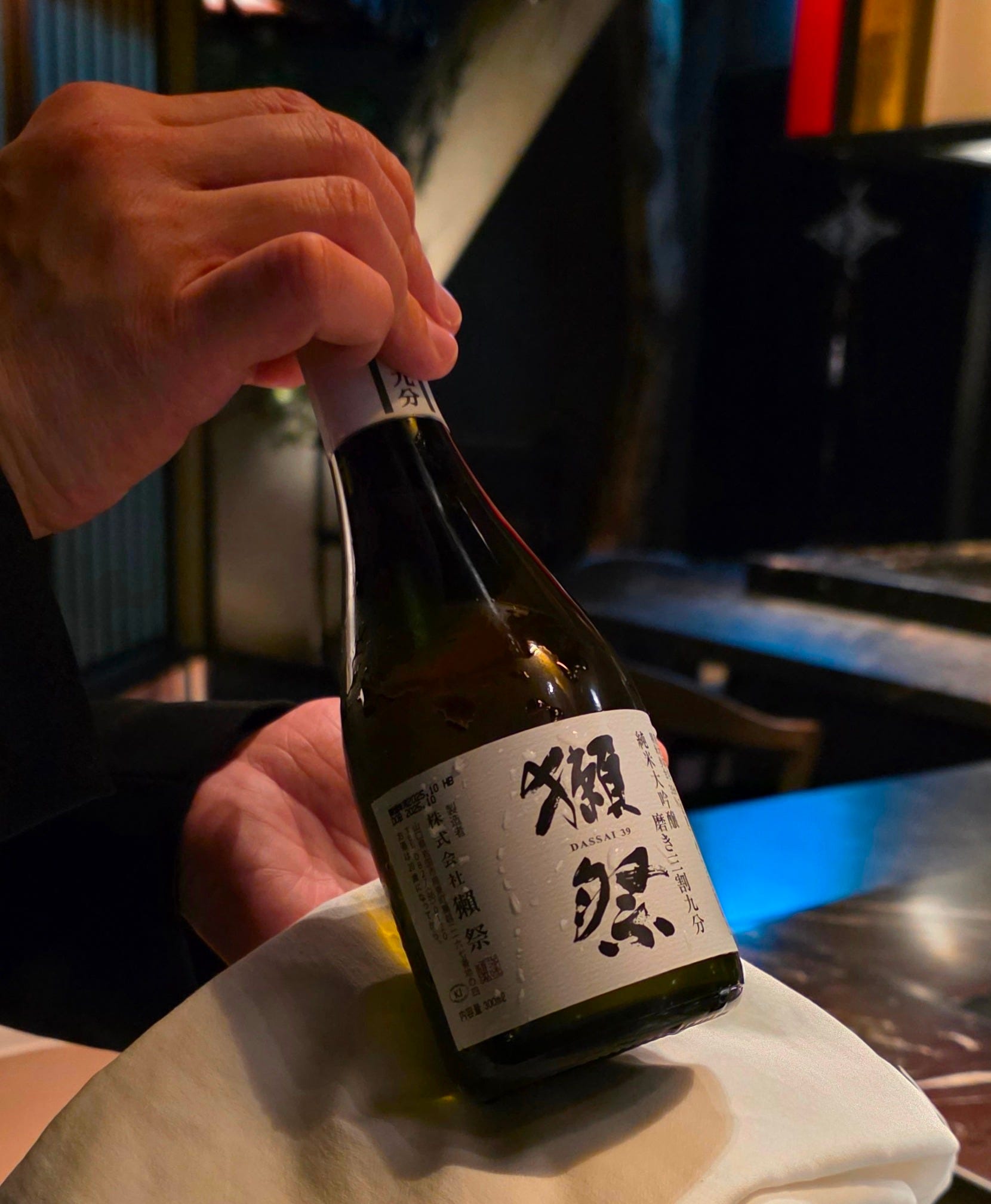 A small bottle of sake. When we see Dassai on the menu, it’s usually a safe bet. This one was a Dassai 39, with 39% of the original rice grain left after polishing. As with many other Dassai expressions, very fruity, floral and sweet.