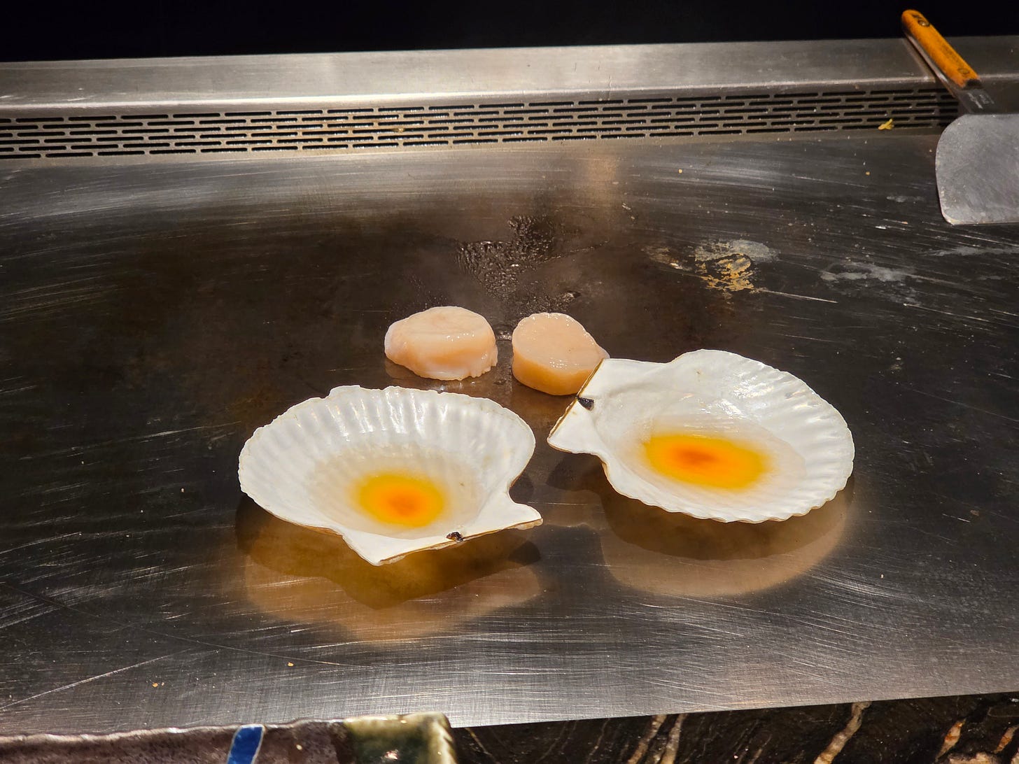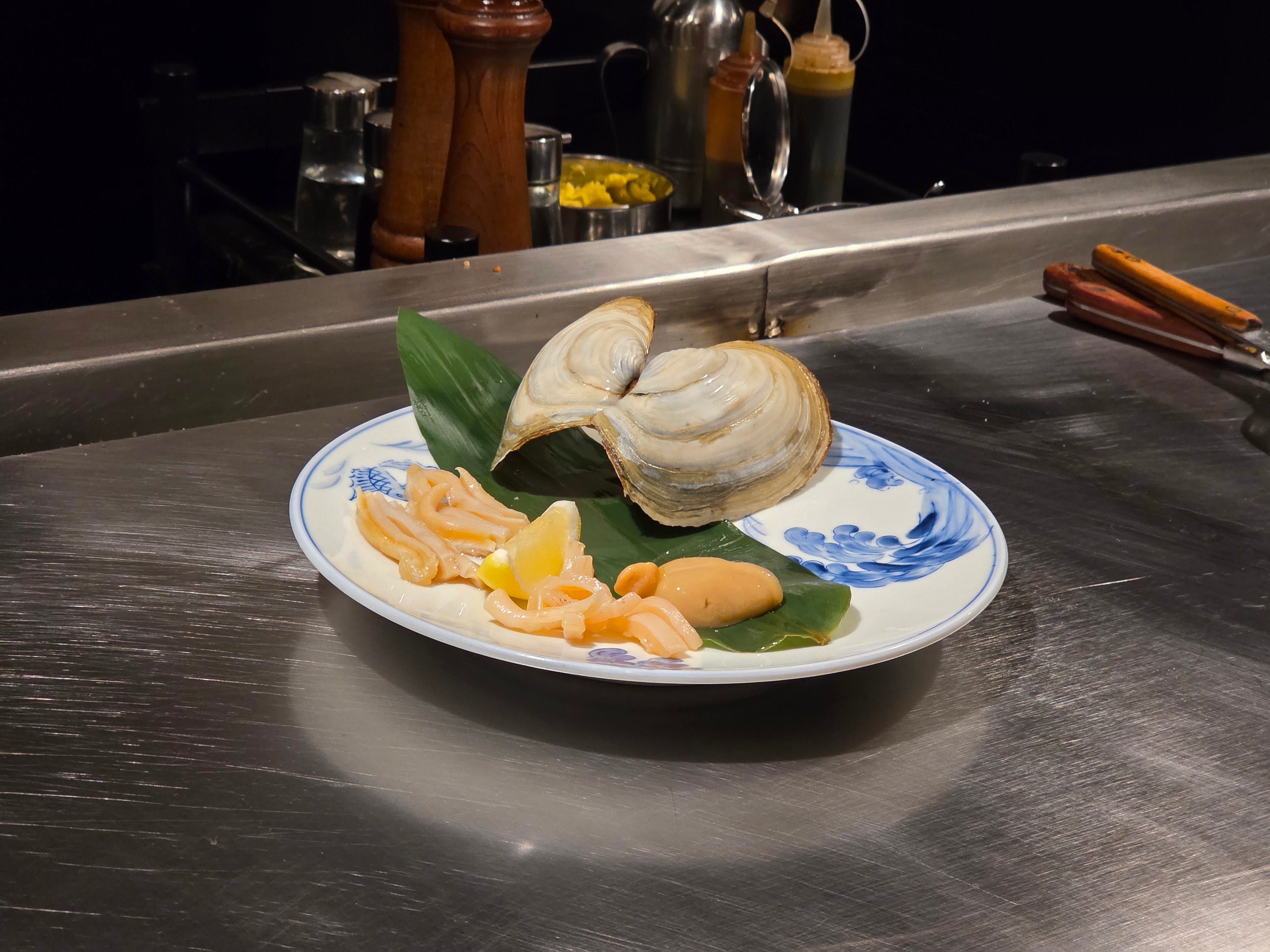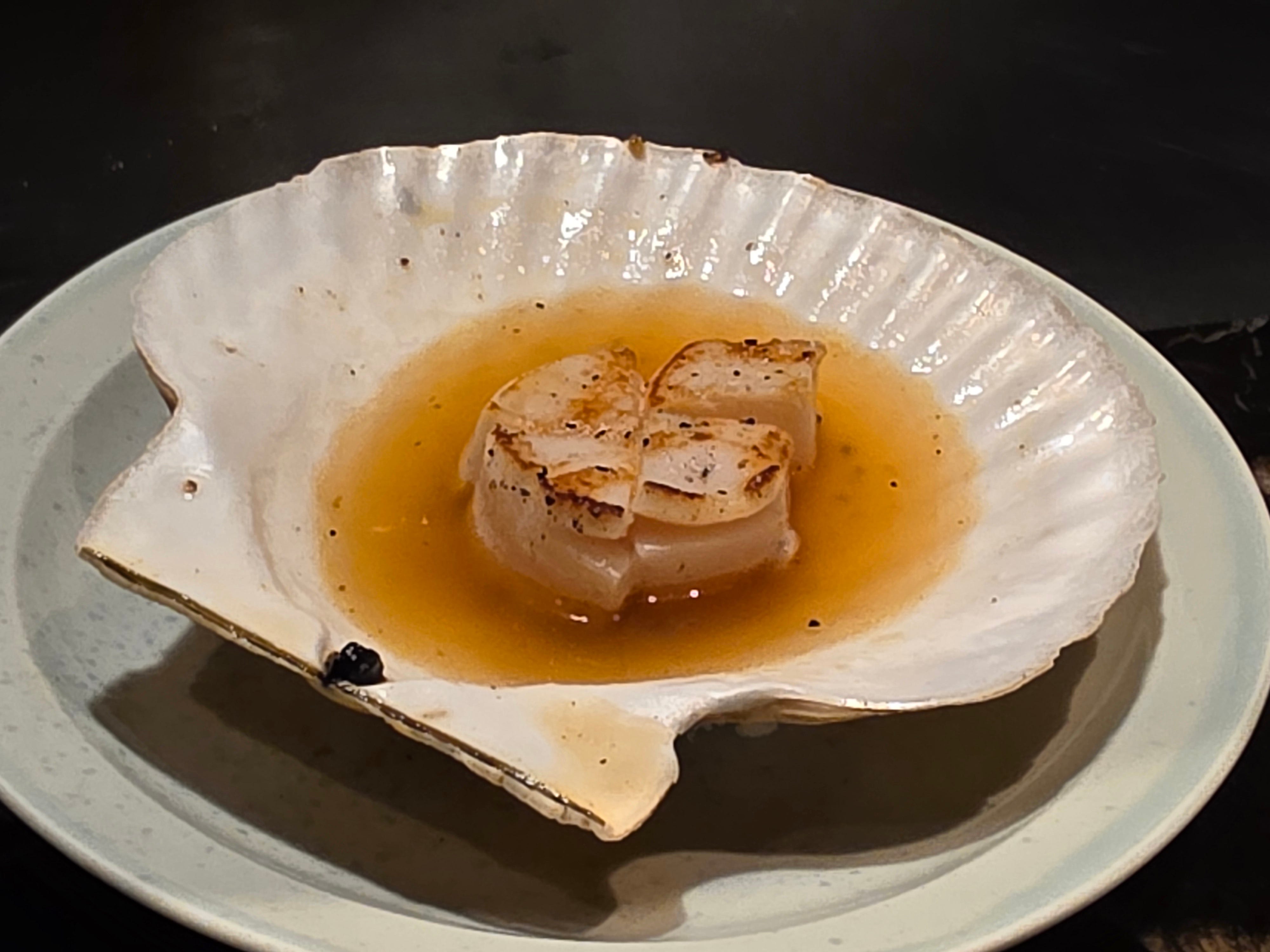 The scallop appetizer, prepared on the grill similarly to the geoduck. I realized partway through that the salt, pepper, lemon juice and butter preparation is the same for nearly all the seafood they do - I just usually don’t get enough varieties of seafood to notice.