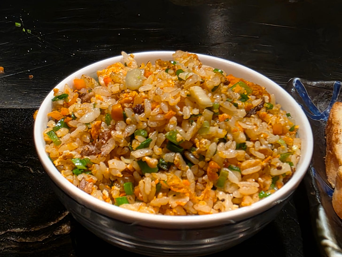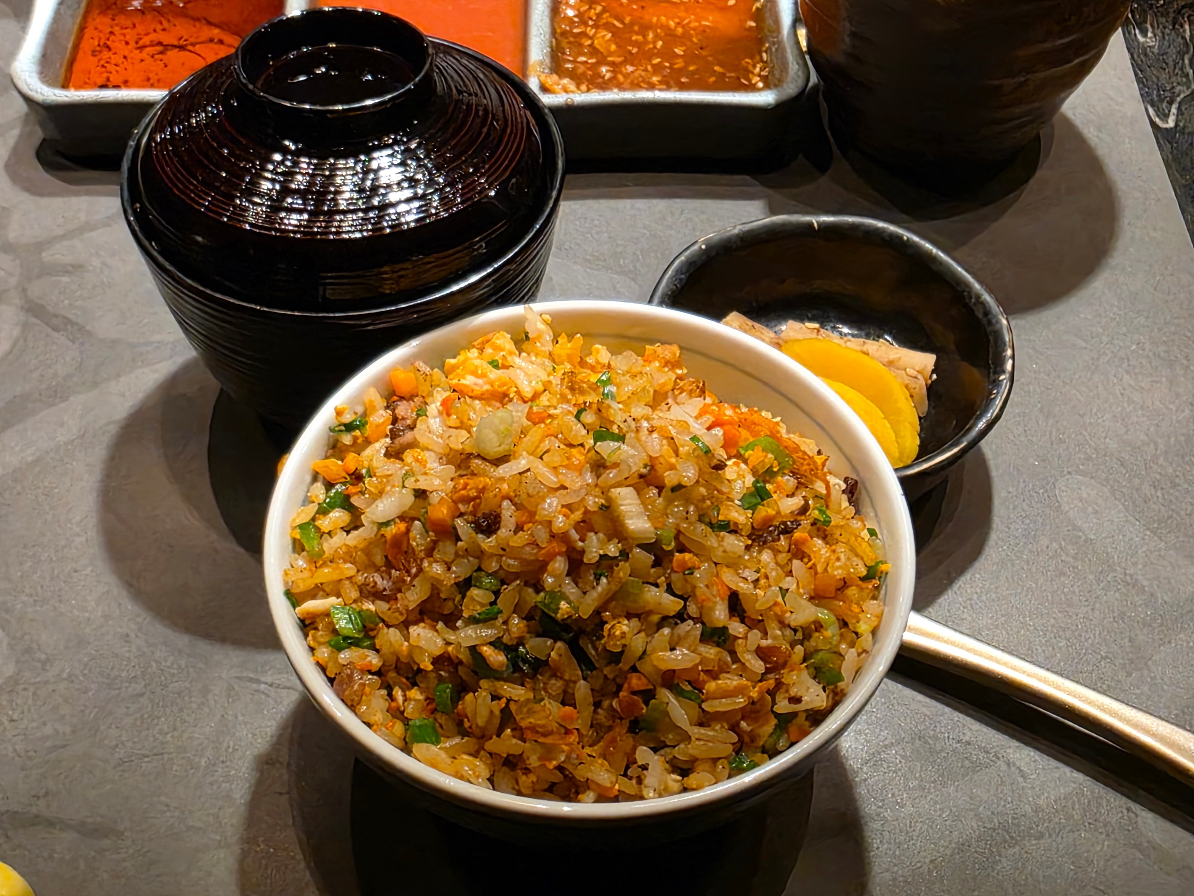 A very western style fried rice, but absolutely delicious. Served with the classic miso soup, and some Japanese pickles.