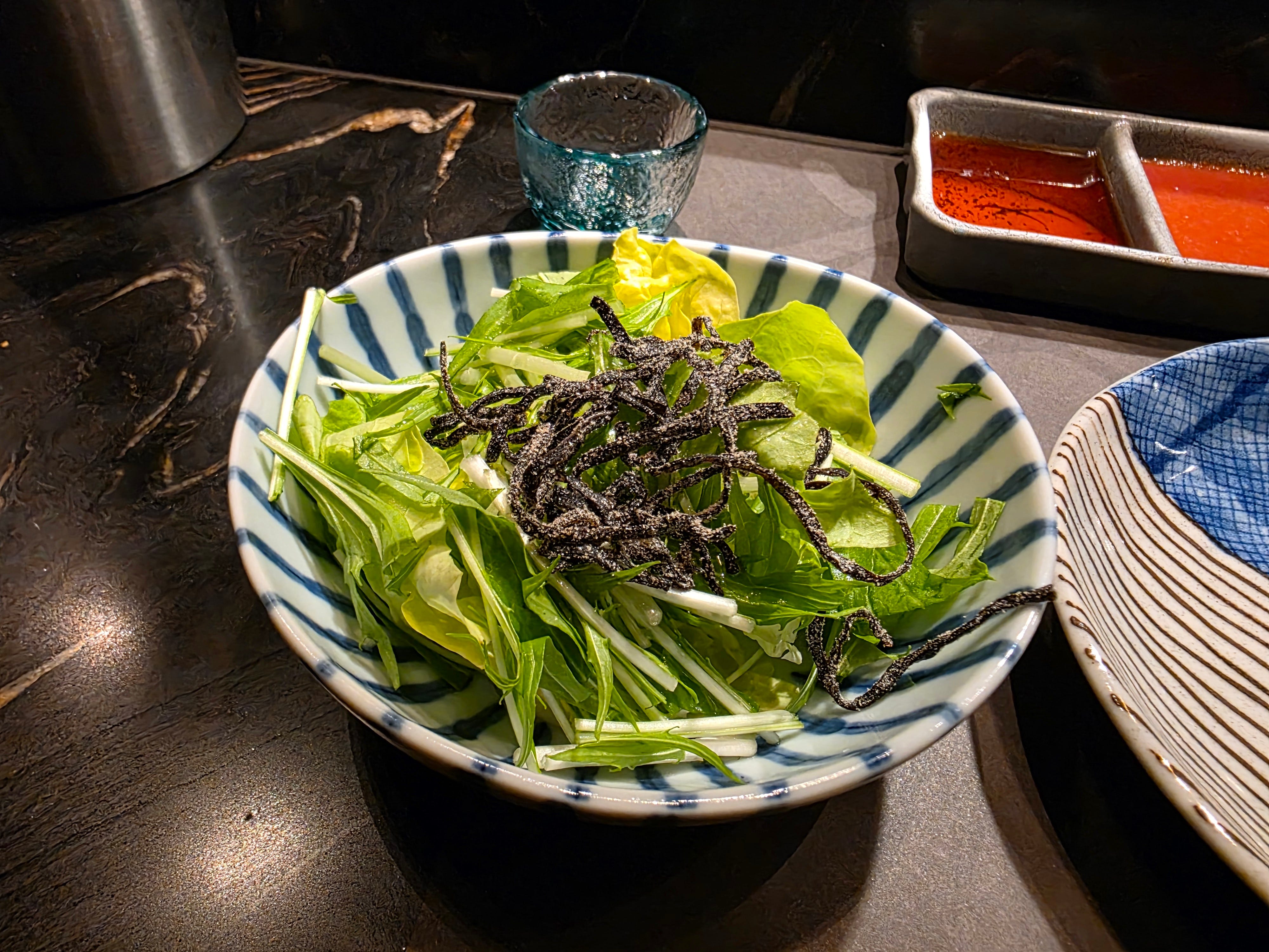 A fairly plain salad to start. There was some dried marinaded seaweed in the middle that was packed with flavour.