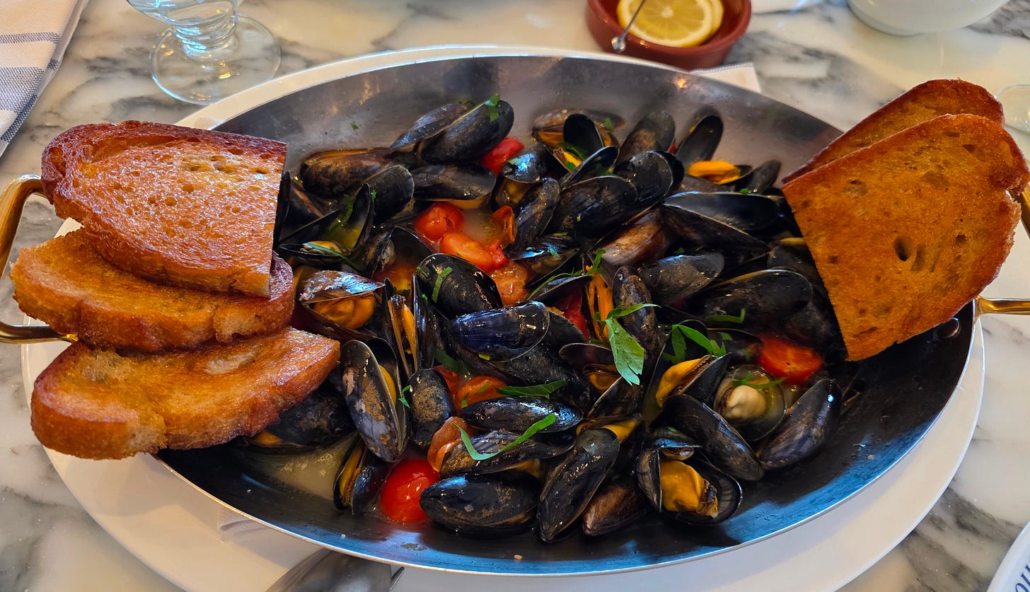 It’s otherwise been a pretty carb-y month, although I did have a great plate of steamed mussels, a dish that always reminds me a bit of French bistros.