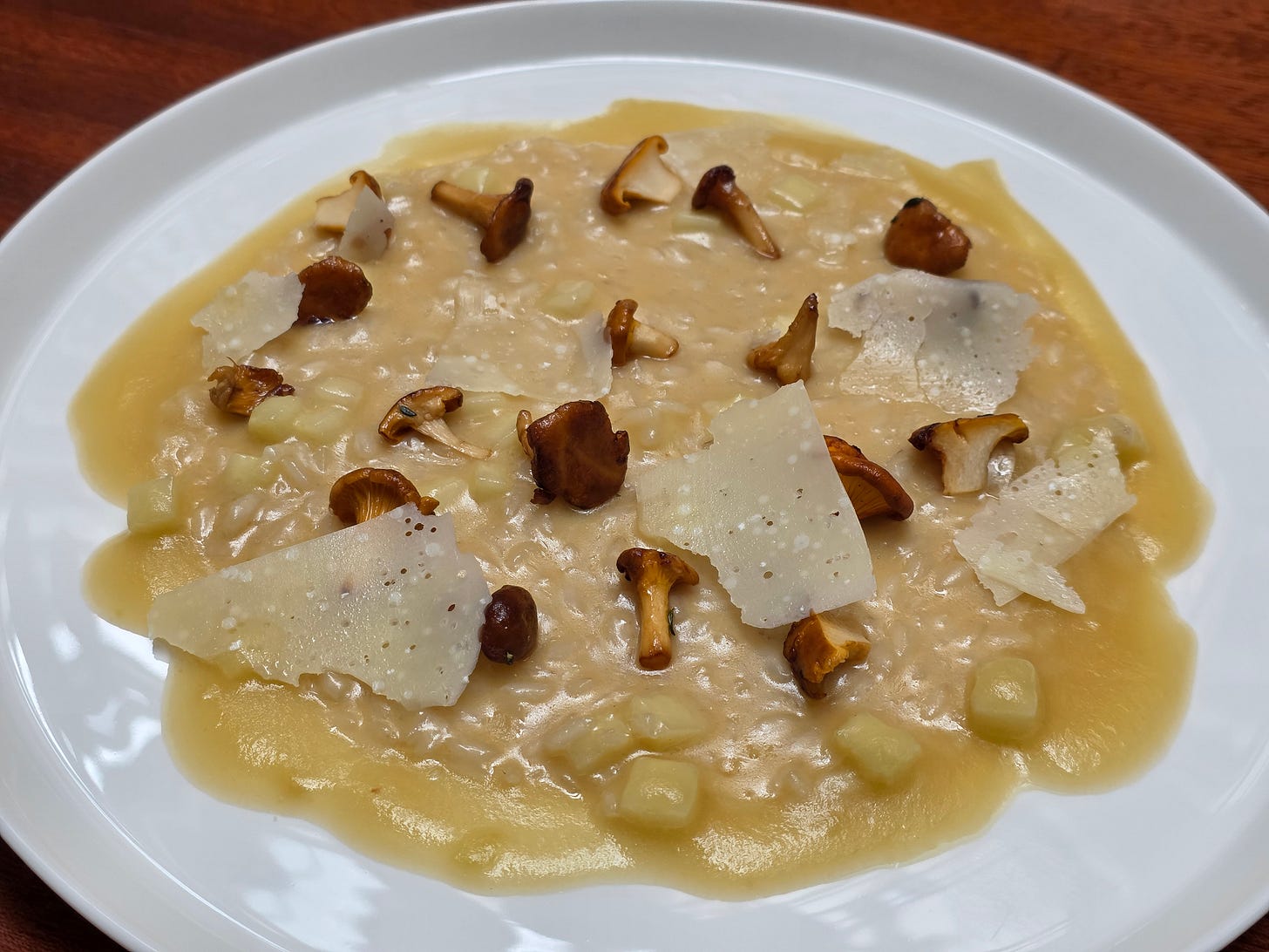 I was a bit offput by the appearance of the risotto, but it was absolutely delicious. Perhaps the plating could use some work, but a rich and warming brown butter risotto with mixed chanterelle mushrooms, flakes of 36 month aged parmesan and little cubes of poached apple adding a bit of sweetness to offset the concentrated umami.