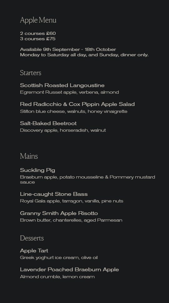 Arriving for lunch, they were offering a seasonal apple-focused menu, with a few choices for starters mains and desserts. Not knowing what to expect, I decided to go with what caught my eye and decided on the langoustine, risotto and poached apple.