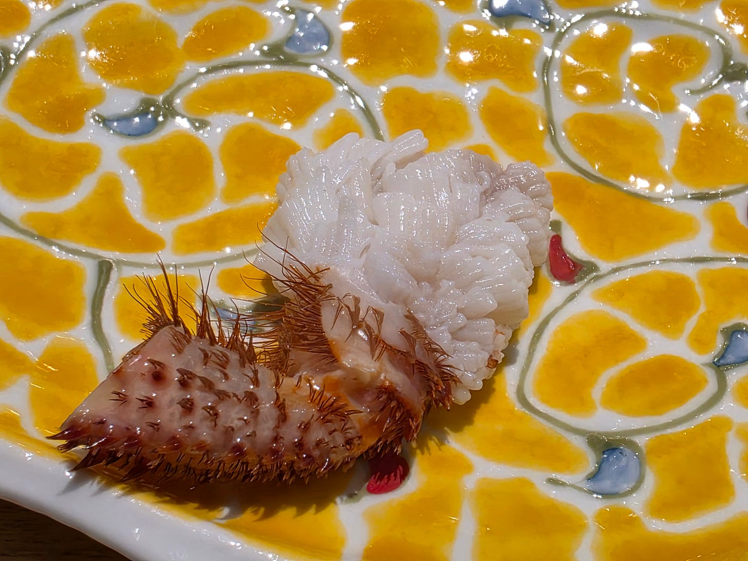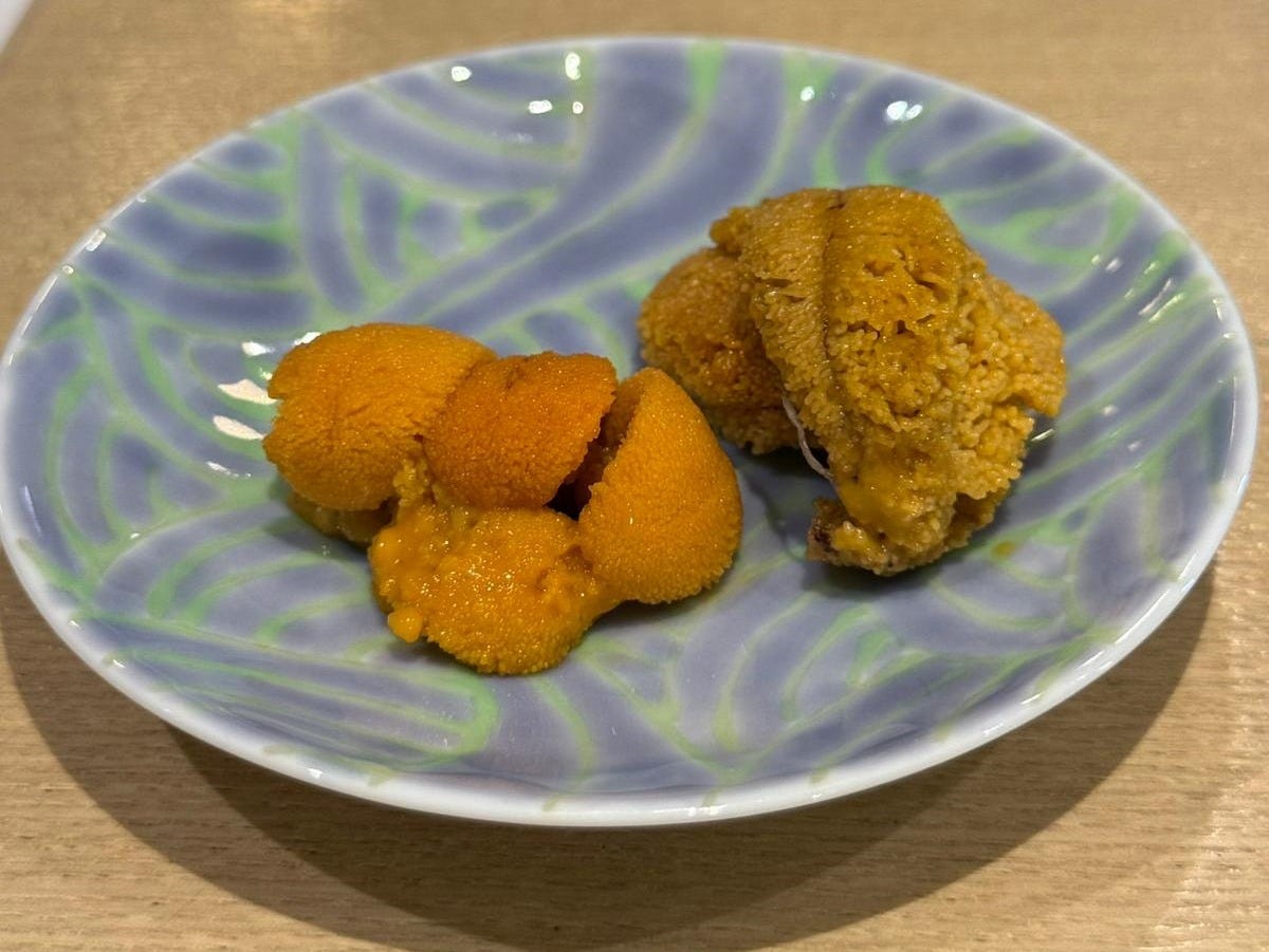 The chef had received a shipment of uni, and let us try two different types: a smaller, more orange, creamier Murasaki uni and a paler, larger Bafun uni with slight bitter notes. Personally, I’m not a huge fan of uni - I understand it’s a delicacy, I just find the bitter creaminess a bit offputting.