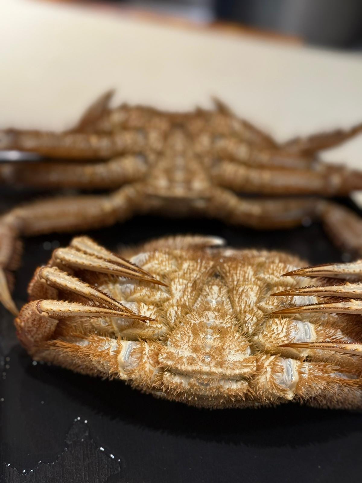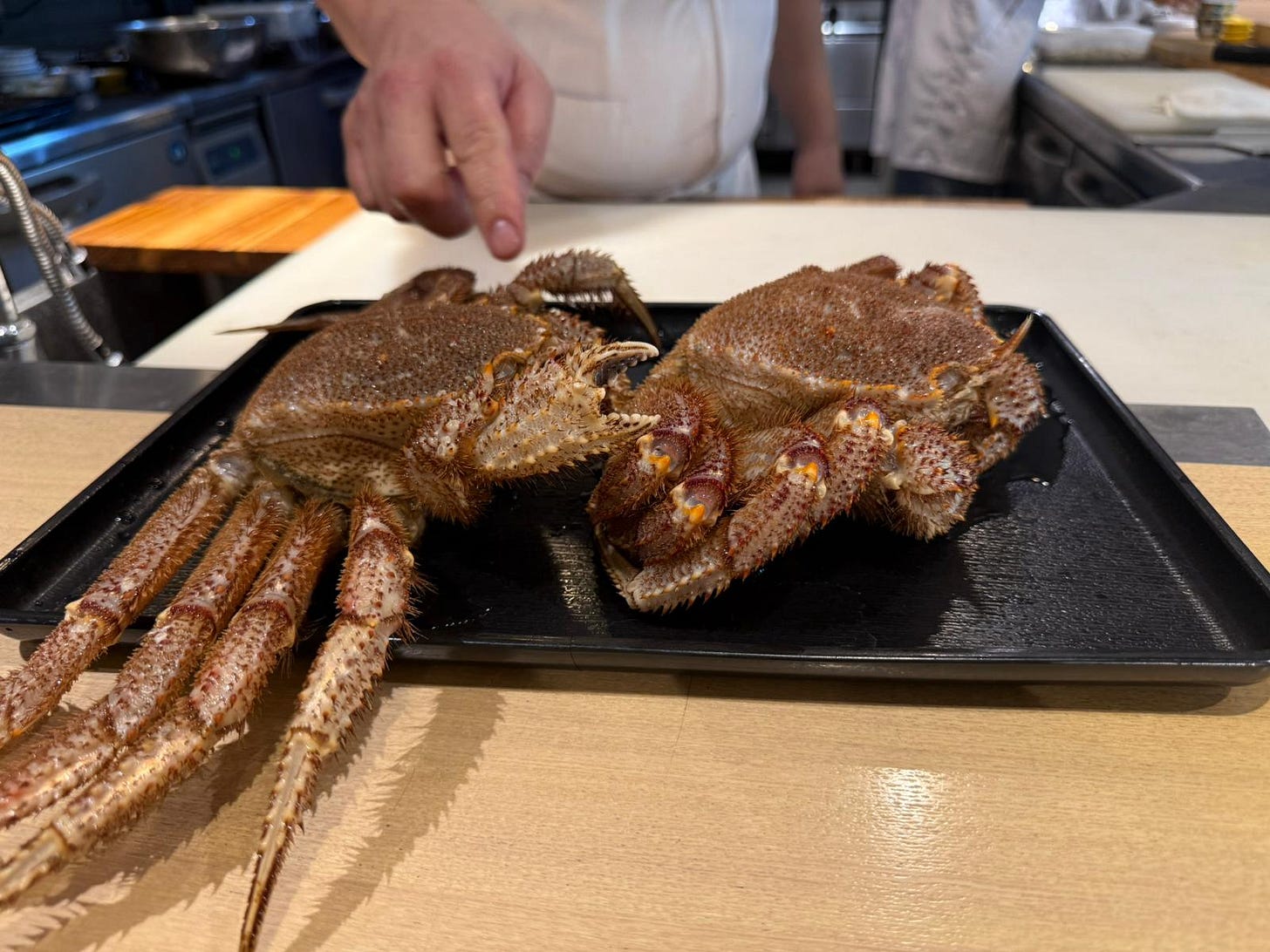 The restaurant is relatively small - all counter seating surrounding an open kitchen. That raised the next problem - the staff didn’t speak any English, and we didn’t speak passable Japanese. Through the miracle of google translate, we were able to figure out what was going on and communicate with each other. We learned that the restaurant had been opened for three years, and the master had spent the last 18 years specializing in preparing crab!