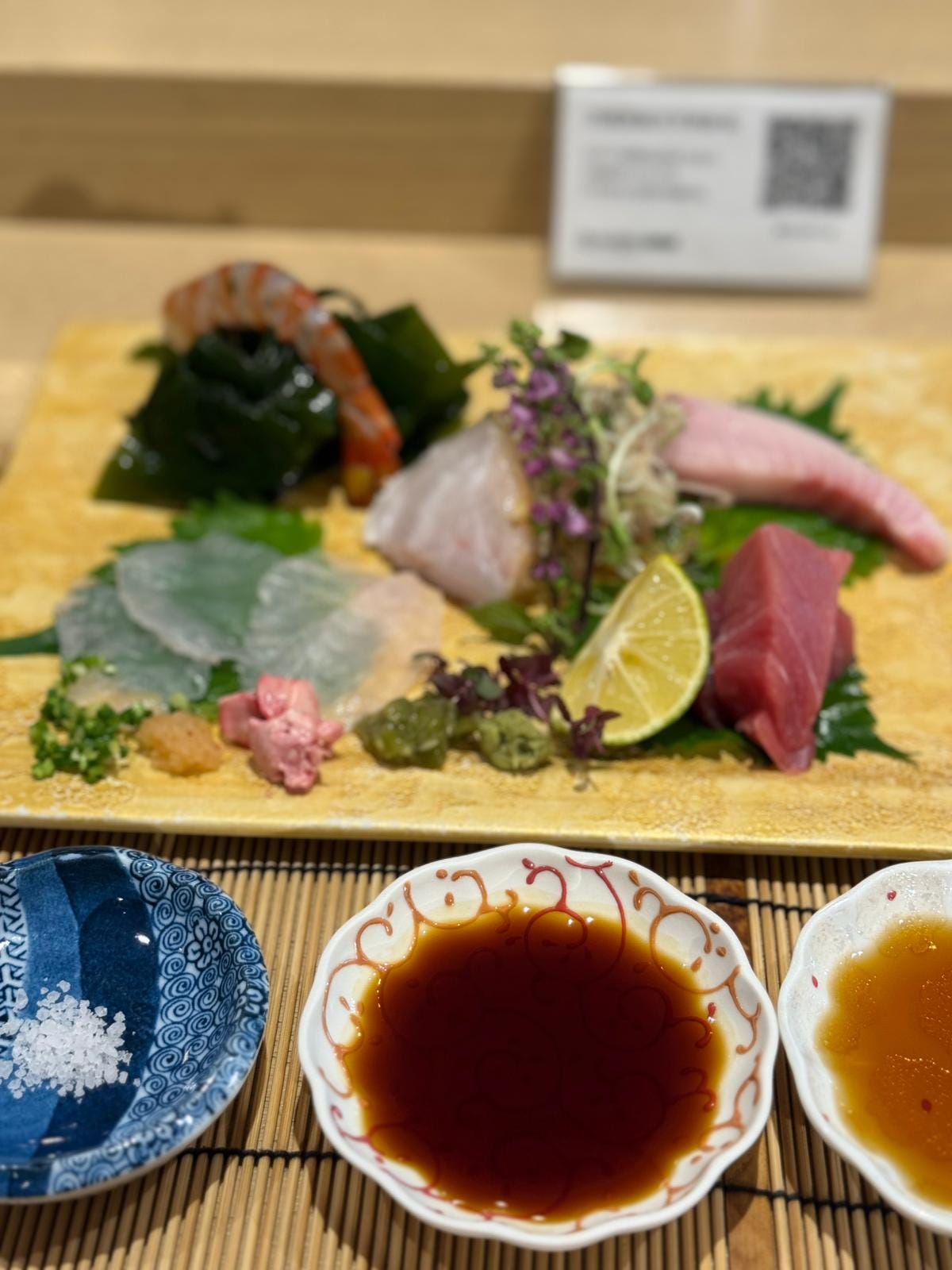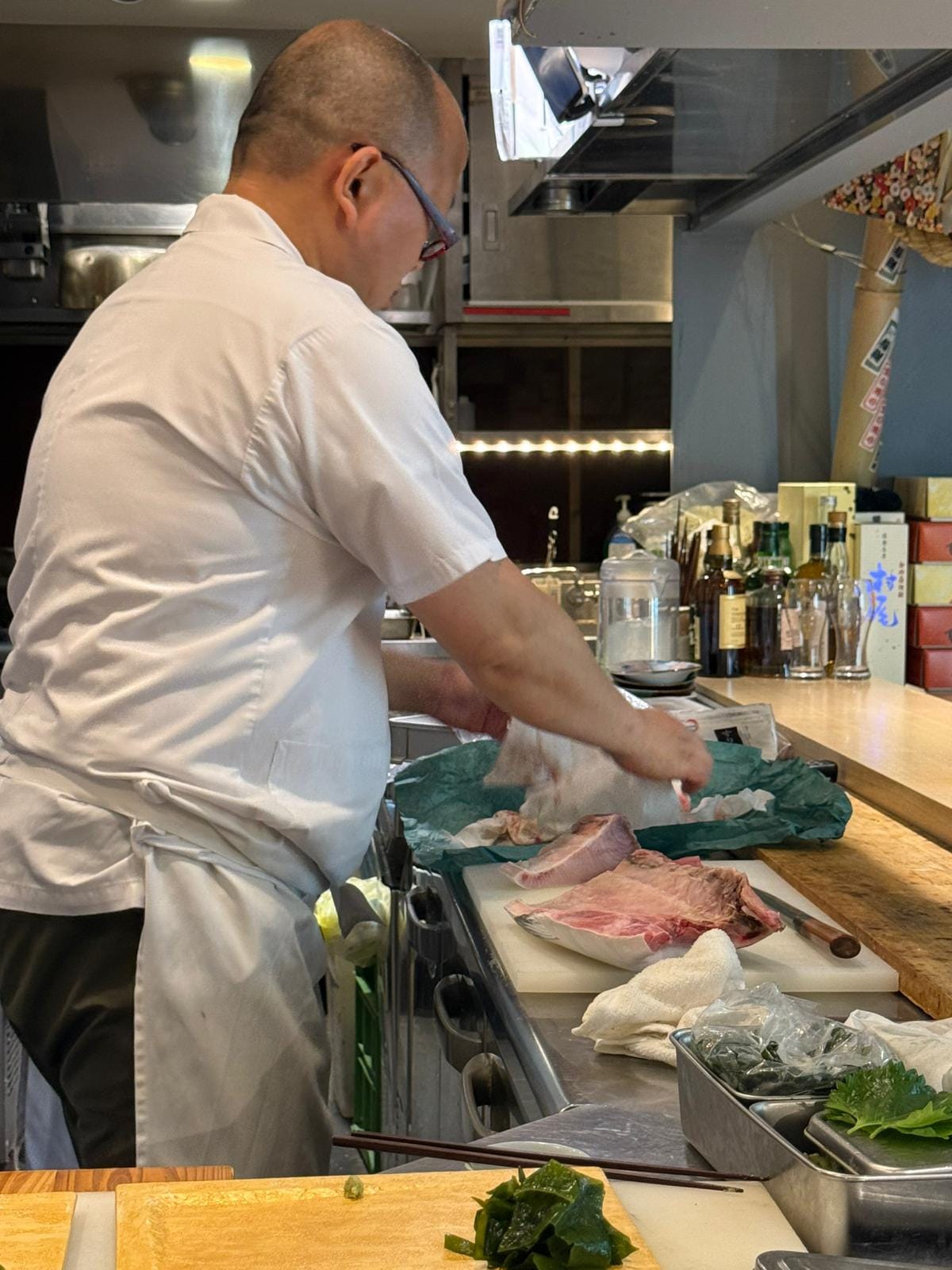 The first problem was just finding the place - the signage was only in Japanese. We were dropped off nearby and finally managed to find it by looking for “LL<5”. Arriving right when the restaurant opened, we were a bit shocked to see that it looked like none of the prep work was done and the staff just showed up - maybe mise en place meant something different here. We later found out that we were the only patrons that night, they opened especially for us, and we had the entire restaurant to ourselves.