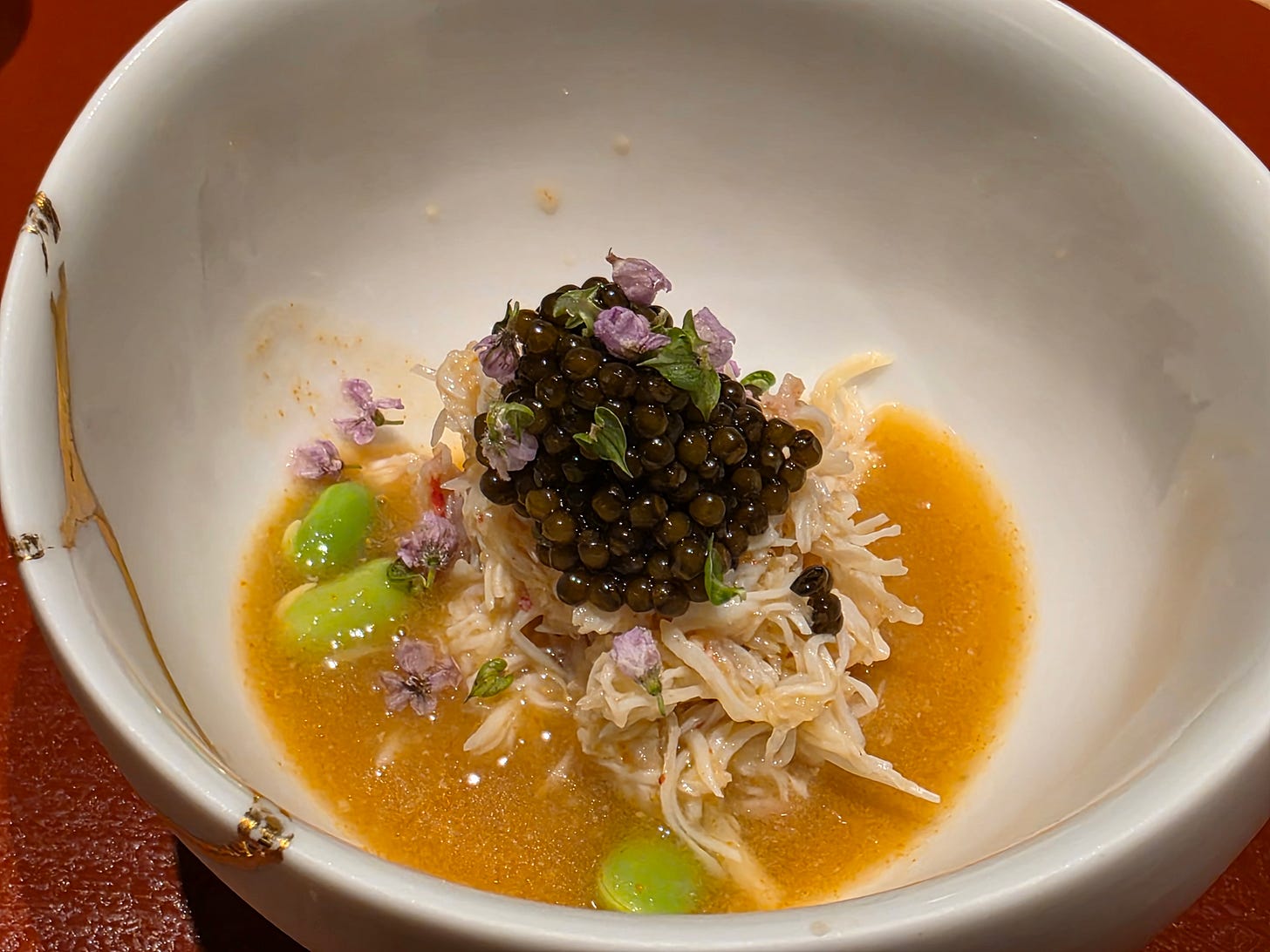 Following on was an appetizer made from hairy crab, edamame beans in a crab roe sauce topped with beluga caviar. Nothing to say here other than delicious - the only improvement I could think of is a larger serving!
