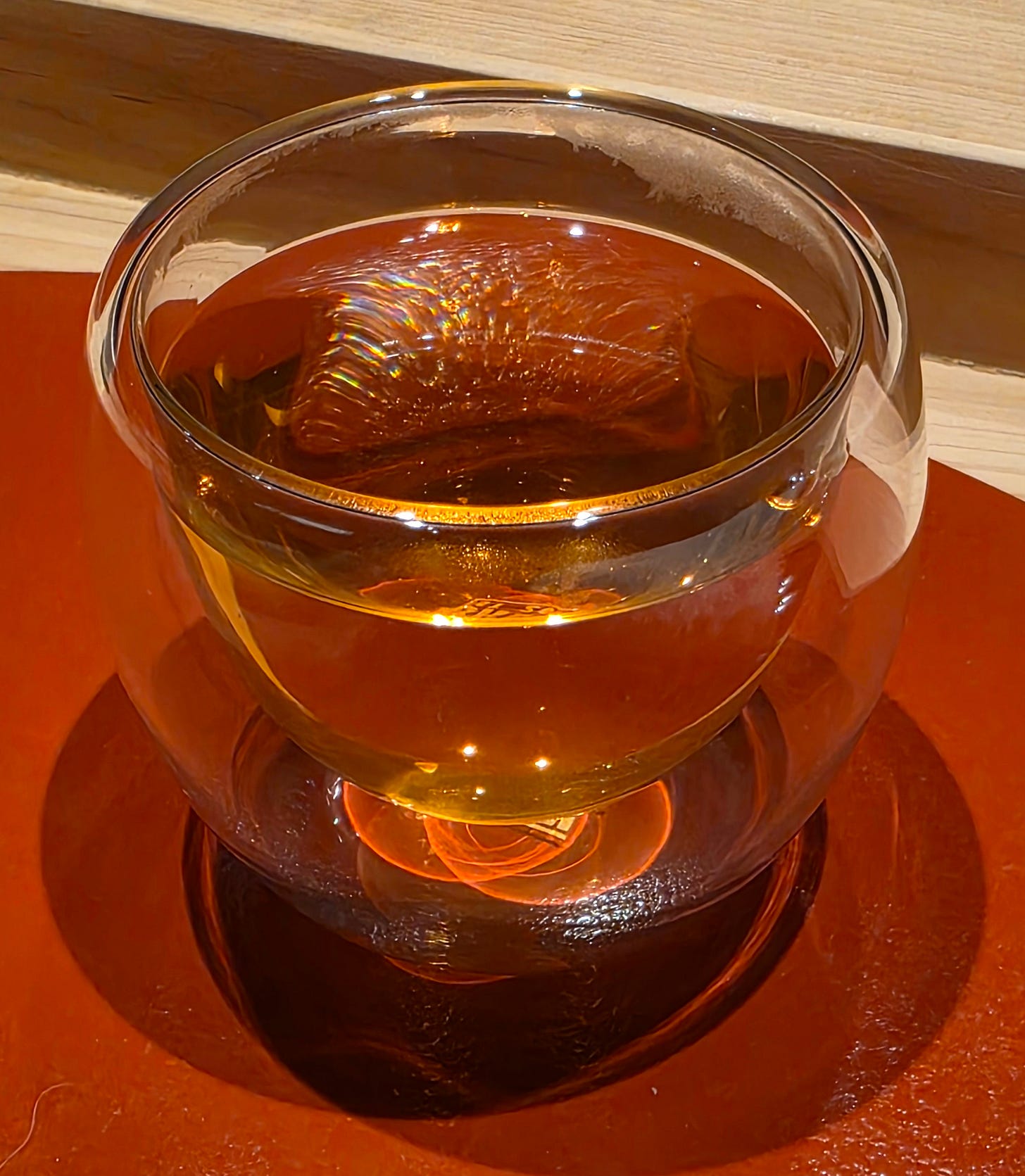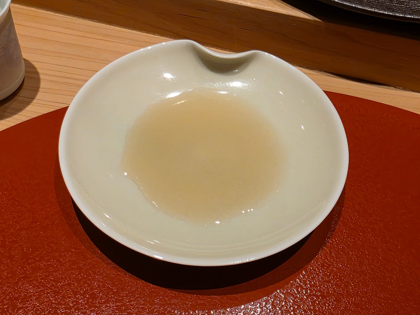 Finally, the last piece of nigiri, and large scallop with a thick sweetened soy sauce. A bit of an odd pairing, I usually see that sort of sauce on a tempura or something with a bit of crisp. Also an odd choice as the final piece of nigiri - usually the progression is from lighter to heavier flavours and finish off with a palate cleanser and dessert. Scallop, as a milder, sweet flavour is usually served much earlier in the menu. In a normal menu, I would’ve expected it either directly before or after the squid. Good nonethless.