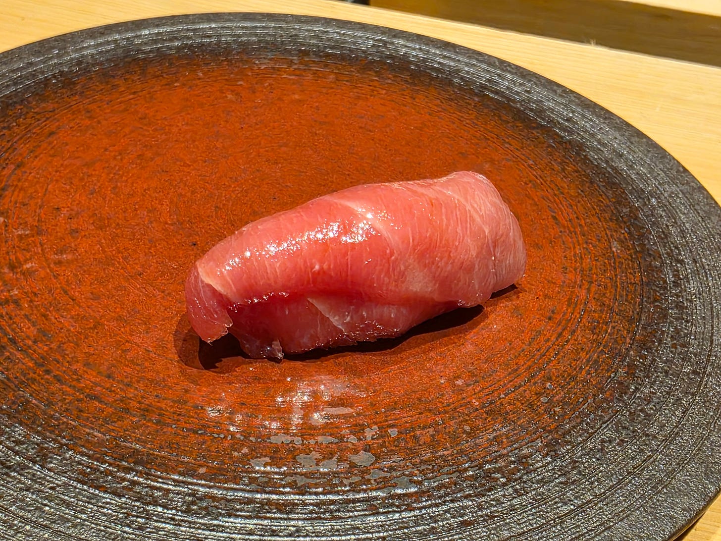Moving from the lighter fish to the more fatty, hearty fish, we move to the chutoro, or medium fatty tuna. Surprisingly, there was a bit of crunch from some pickled daikon radish, adding a bit of sweet and sour to the fatty tuna belly. Unique preparation, and a really good one.