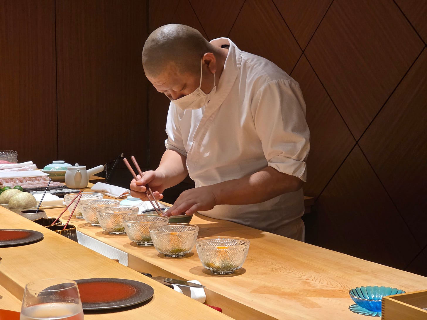 Shoukouwa is run by Executive Chef Kazumine Nishida, born in Kansai, Japan, who has been at the helm of Shoukouwa since October 2019, following his role as sous chef starting in 2016. With over 20 years of culinary experience, Chef Nishida is a master itamae known for his meticulous technique and dedication to perfection. His philosophy emphasizes respect for ingredients, viewing food as a source of life, and he strives to elevate the craft of sushi daily. Chef Nishida’s signature dishes showcase his ability to enhance subtle flavors through skillful preparation. He works closely with Chef Stroobant to mentor the next generation of chefs, particularly at Shoukouwa Shinjidai, a sister restaurant blending Japanese kaiseki with French techniques. Nishida’s hands are his “most valuable tool,” and he describes his sushi-making as a “dance” of precision, transferring his passion directly to diners.