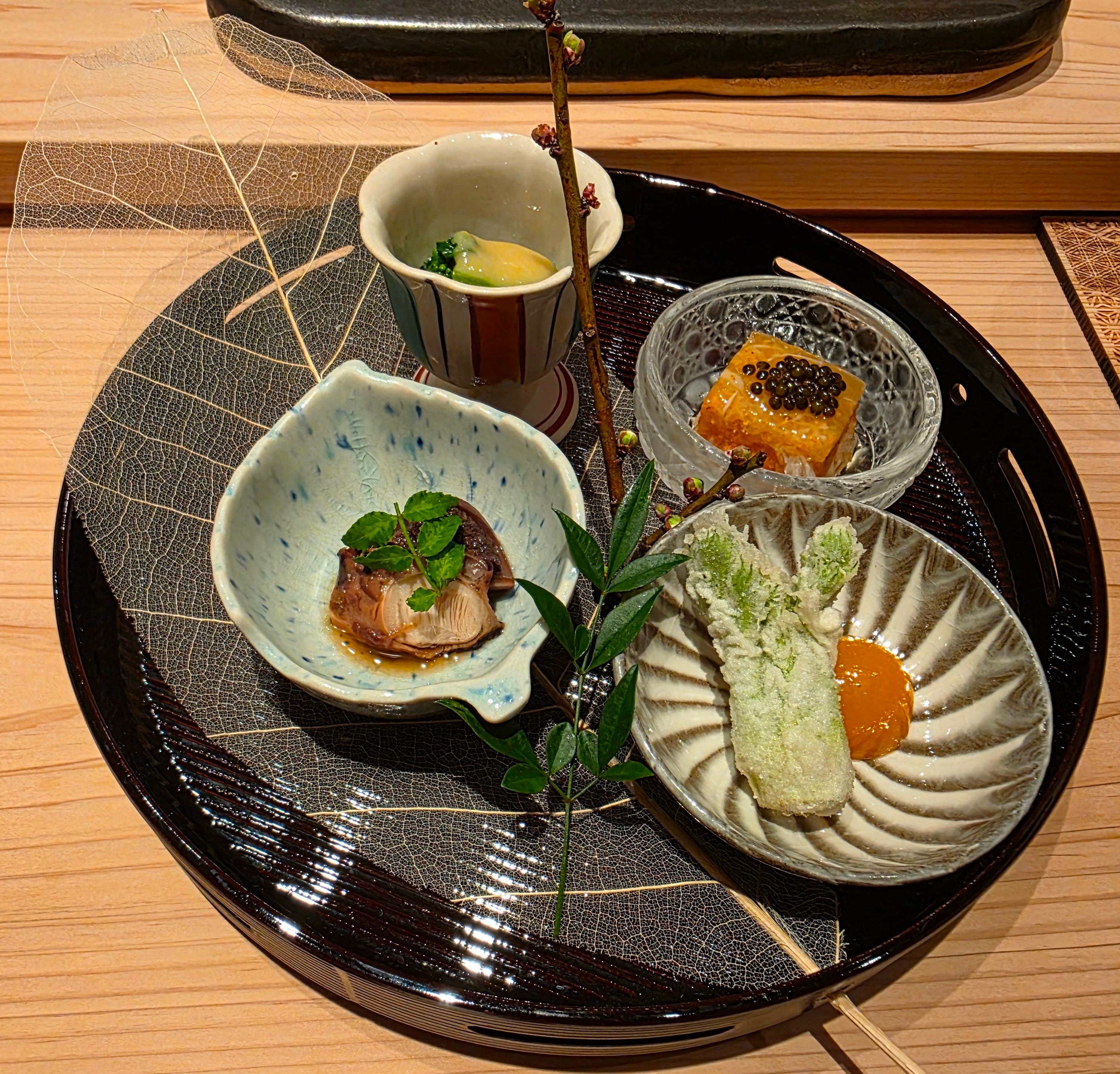 The next appetizer was a piece of hearty grilled butterfish, served with a bit of grated radish and slice of yuzu to be squeezed on top. I’m always really careful about eating butterfish or escolar, as buildup of wax esters in the flesh can create undesirable gastrointestinal effects. Flavour and texture-wise though, the fish was great - a bit of char along one side, hearty, meaty and firm fleshed.