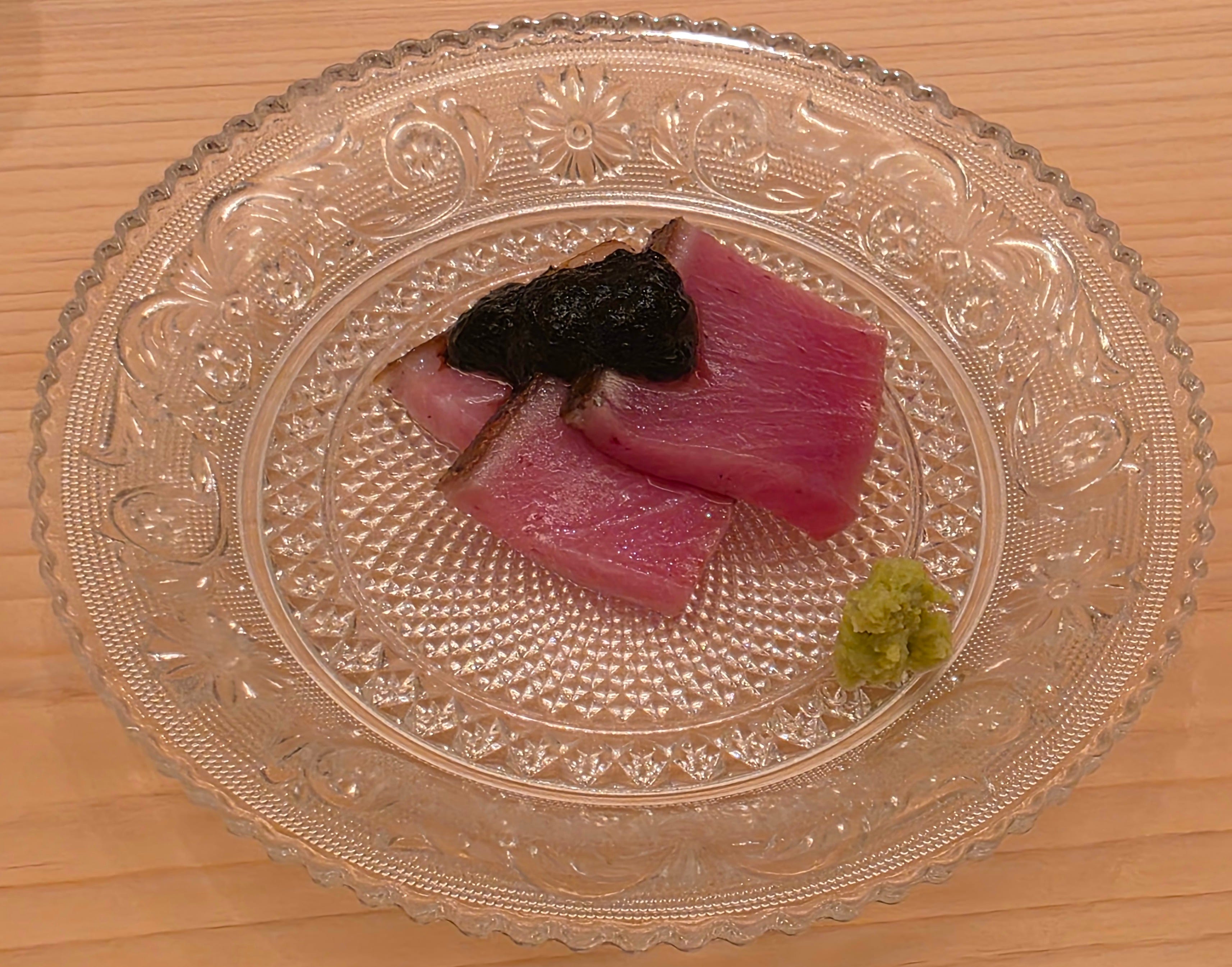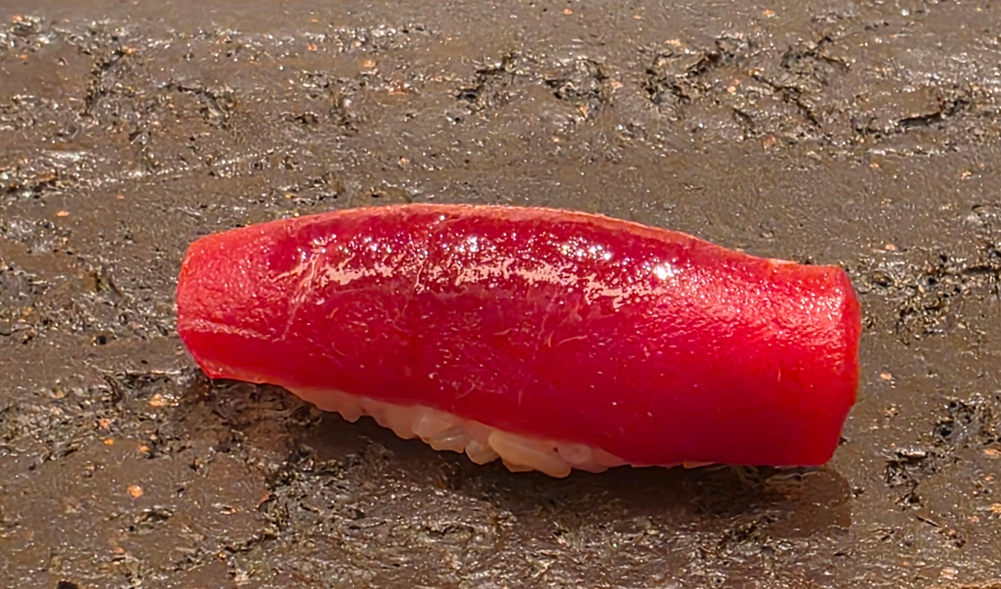 Moving into the tried and true classics - the bluefin tuna. Starting with the lean cut from the back of the dish, the Akami.